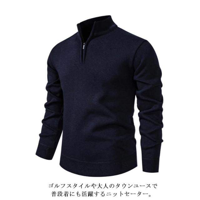 送料無料 メンズ 送料無料 ニット 長袖 ゴルフ ゴルフウェア フルジップアップ ニットジャケット トップス リブ編み 無地 スポーツ 秋冬 新作
