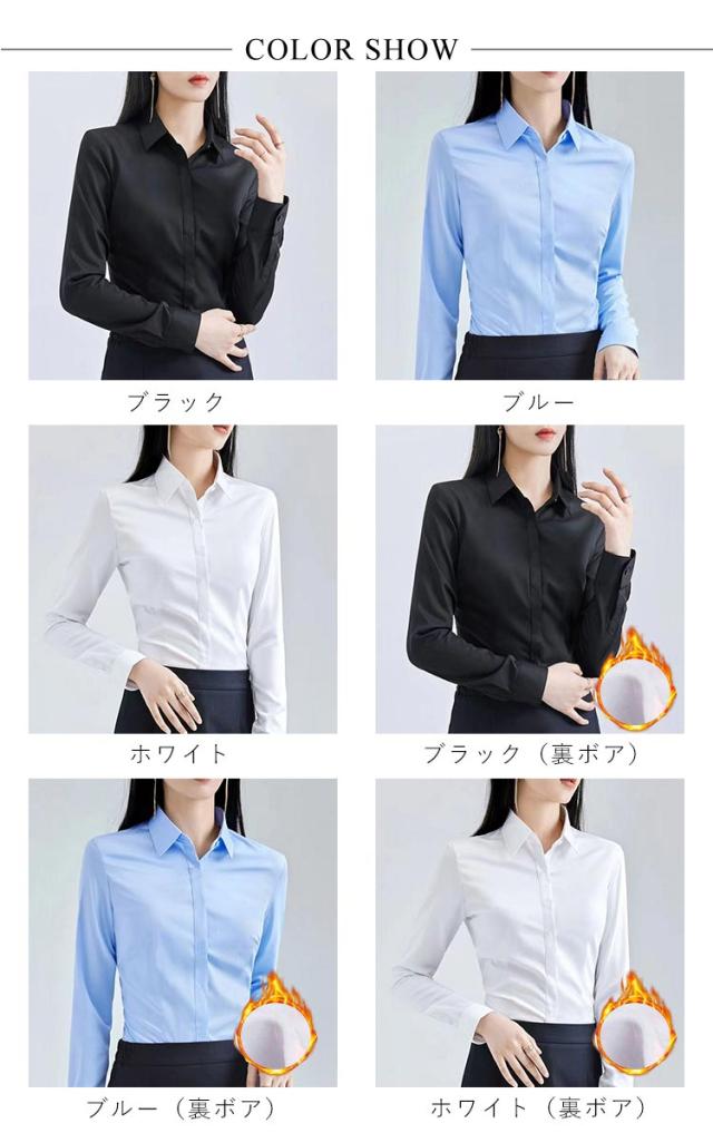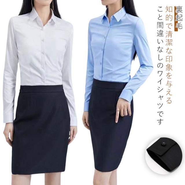 オフィス 通勤 ワイシャツ 制服 裏起毛 事務服 ワイシャツ リクルート 長袖 就活 厚手 暖かい スーツシャツ ブラウス Yシャツ 開襟 レディース 通学 ビジネス OLさん 防寒 保温 あったか 着痩せ 冷え取り