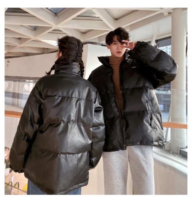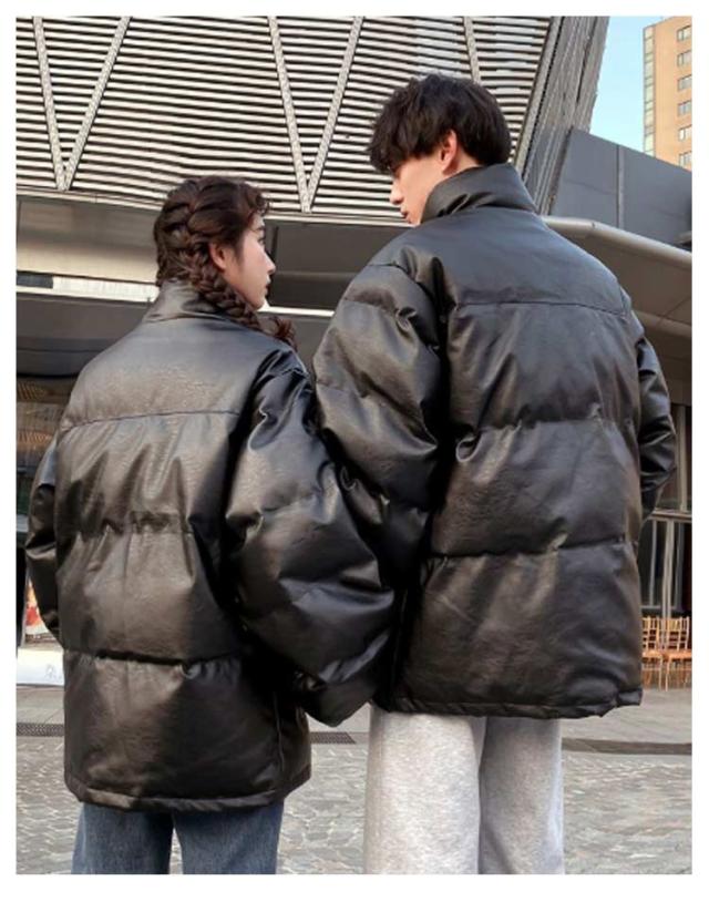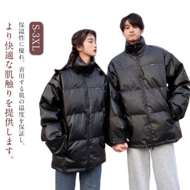 メンズ ジャンパー 冬服 無地 中綿ジャケット ダウンコート 中綿入り ダウンジャケット 立ち襟 レザージャケット ダウンジャケット アウター 防寒着 冬 中綿ダウン PU 防風 防寒 厚手 冬服 カップル ペア 男女兼用