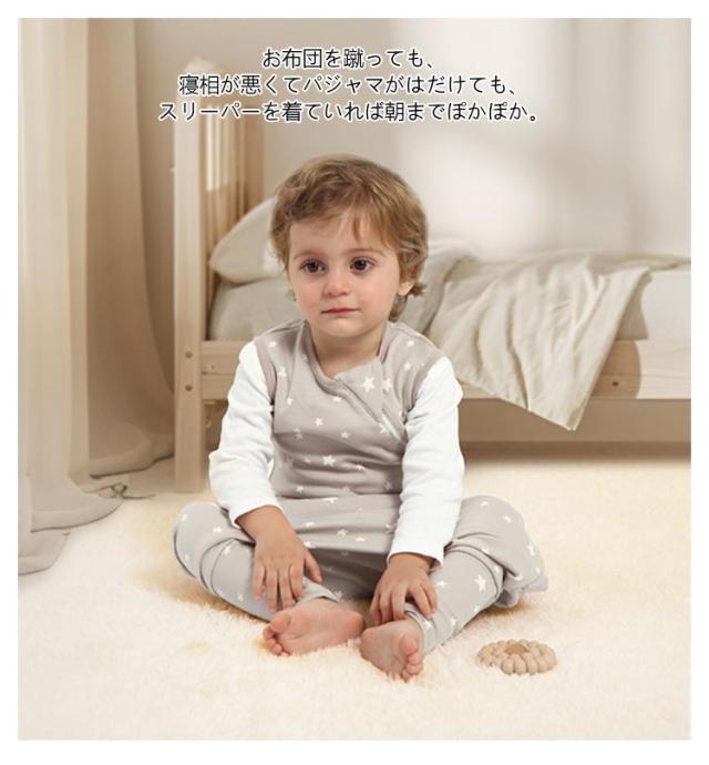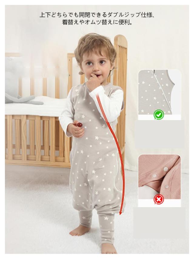 | 自由に動かせる足つきコットンスリーパー。 吸汗性・通気性に優れた綿コットン生地、お子さまの快適で安全な眠りをサポート。 長めの足首リブで、折り返ししても使えるから、お子様の成長に合わせてロングタイムご利用可能。長すぎて、裾ずりで倒れたりなど心配もなし。 上下どちらでも開閉できるダブルジップ仕様、着替えやオムツ替えに便利。 お布団を蹴っても、寝相が悪くてパジャマがはだけても、スリーパーを着ていれば朝までぽかぽか。 | |