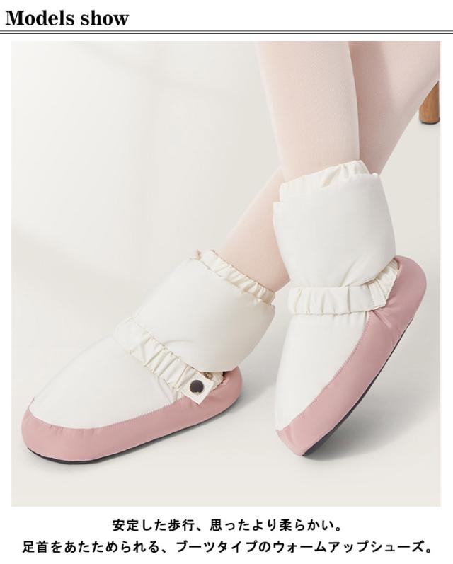 | 安定した歩行、思ったより柔らかい。足首をあたためられる、ブーツタイプのウォームアップシューズ。 柔らかくて軽い、曲がったり地面に触れたりしない、すっきりとした質感、耐摩耗性、滑り止め、安定した歩行、思ったより柔らかい。 素足やタイツなどの上に、またトウシューズの上から履いていただくタイプです。 足首の弾力性を調節できるので、太くて細い足の形にとらわれず、足が暖かくなります。 効果的に足を保護し、ウォーミングアップ速度を上げ、ダンスワークを制限することはありません。しっかり温めてくれます! 室内でも足首が冷えて困っている方には、ルームシューズとしても♪ ふわふわでやわらかい素材を使用し、保温性・通気性に優れています。 長時間着用して、心配がなく、快適にお使いいただけます。 軽量なので長時間着用しても疲れません。 | |