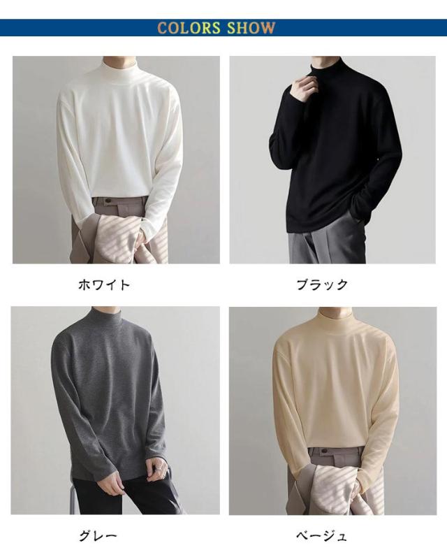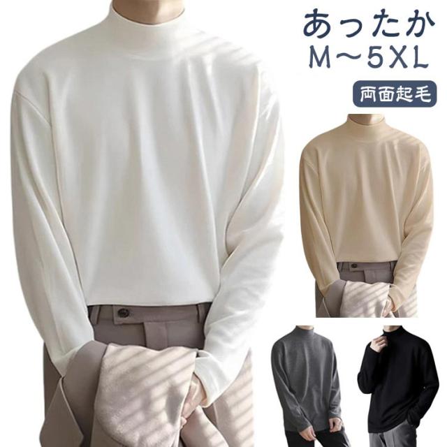 トップス カジュアル カットソー メンズ ハイネック 長袖 インナー 両面起毛 あったか 肌着 重ね着 両面起毛 防寒 インナーシャツ 無地 暖かい シンプル 柔らかい 保温性 おしゃれ 黒 白 ボトルネック