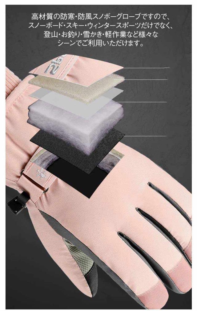 | 保温・断熱効果は極めて高い 優れた防風・防水性 アウトドアグローブ この防寒手袋は手の甲が撥水加工表地で、中綿は最高級3Mシンサレート断熱材を採用し、保温・断熱効果は極めて高い 裏地は柔らかい裏起毛です。3層高品質な断熱素材を施されており、真冬でも手を暖かく快適に保ちます。 手首まですっぽり覆っている伸縮性や密閉性を持つニットリブが採用され、ウエアの袖口との隙間を防ぎ、冷気の侵入をガードし、真冬でもポカポカ。 耐久性のある高撥水表布を採用し、外からの水の侵入を防げます。雪と雨の時にも安心に使用していただけます。 高材質の防寒・防風スノボーグローブですので、スノーボード・スキー・ウィンタースポーツだけでなく、登山・お釣り・雪かき・軽作業など様々なシーンでご利用いただけます。 | |