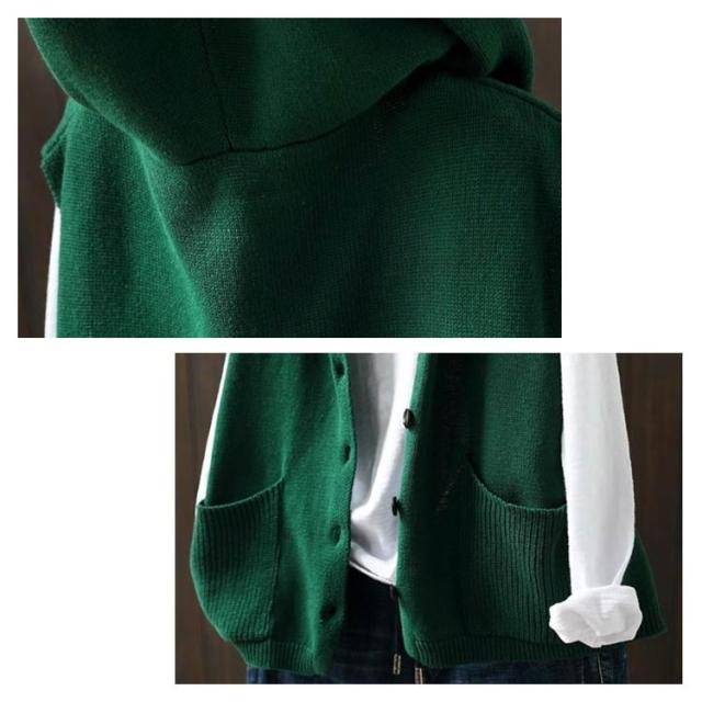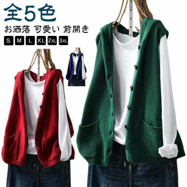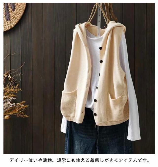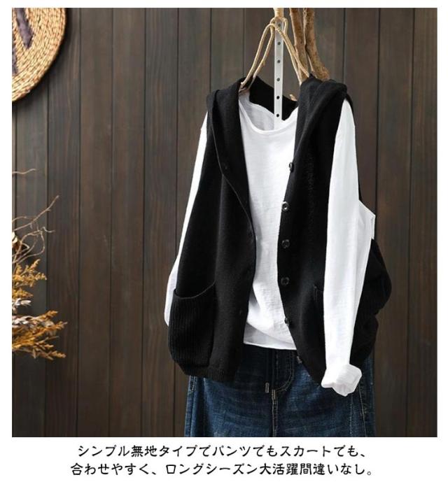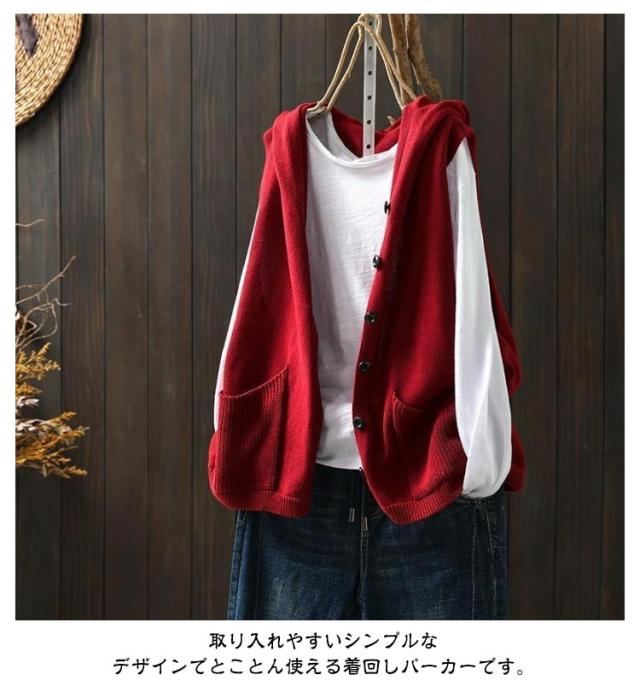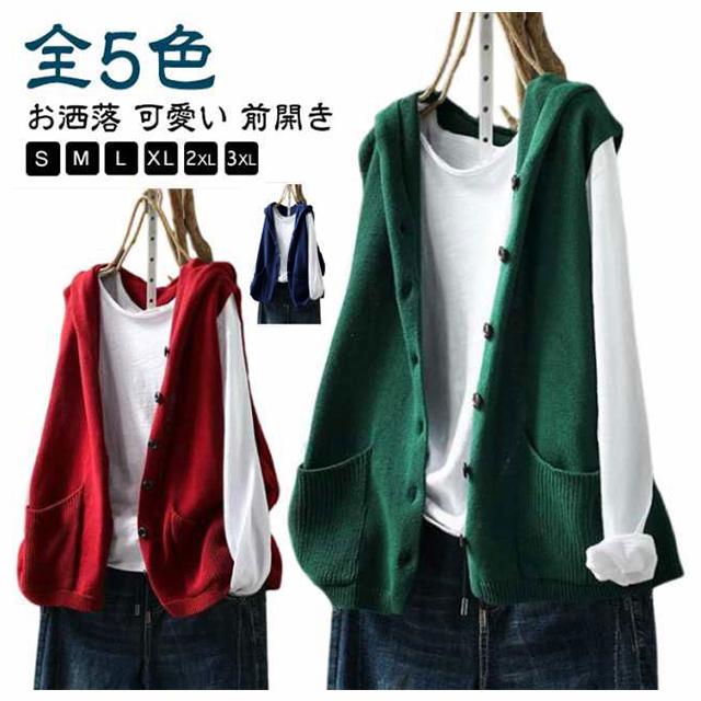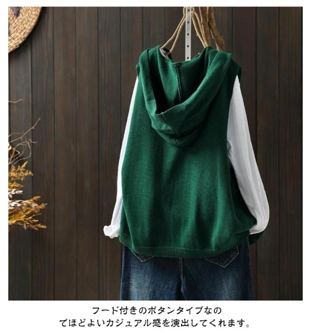 ニットパーカー ニットベスト レディース ノースリーブ フード付き ニット ベスト 前開き パーカー ポケット付き カーディガン ゆったり おしゃれ 重ね着 レイヤード トップス お洒落 可愛い 緑 ベージュ 黒 紺 春 秋冬 送料無料