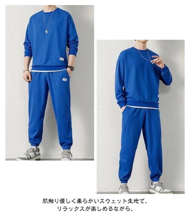 ジャージ上下 長袖 メンズ スエット ジャージ 無地 スウェット トレーナー セットアップ スウェット 上下セット スポーツウェア トップス 長ズボン おしゃれ ロングパンツ 春服 秋服 重ね着風 運動着 黒 大きいサイズ 2点セット ルームウェア 外出 学生