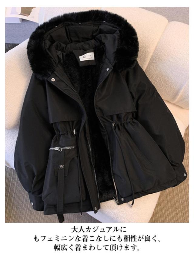 レディース モッズコート ジャケット 冬 トレンチコート マウンテンパーカー ファーフード付き 裏起毛 冬 中綿入り コート アウター 裏ボア ブルゾン ミディアム丈 厚手 保温 暖かい きれいめ 中綿ジャケット 2024 春 秋 防寒着 黒 大きいサイズ おしゃれ
