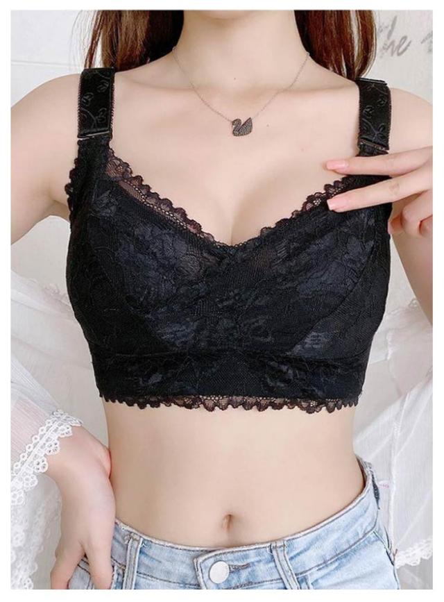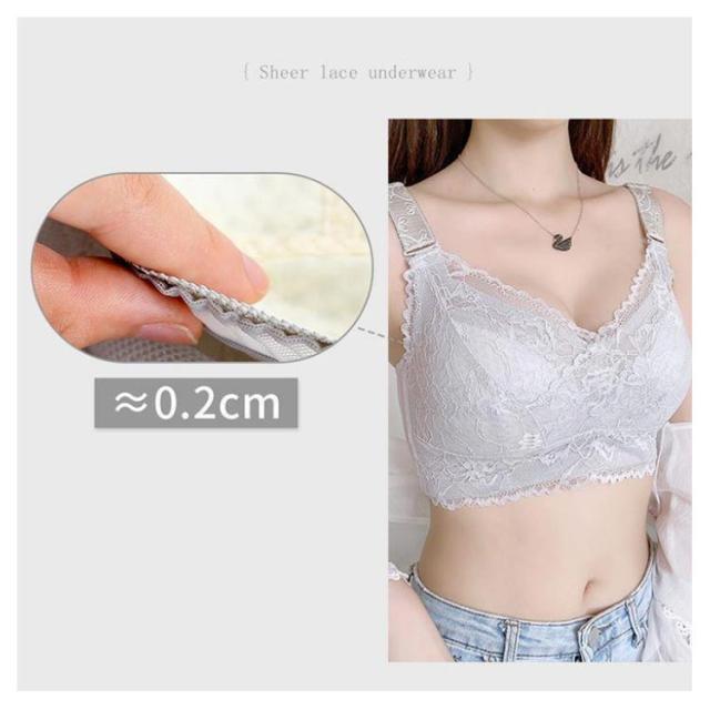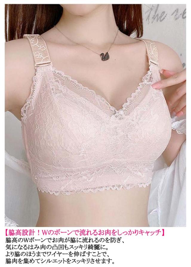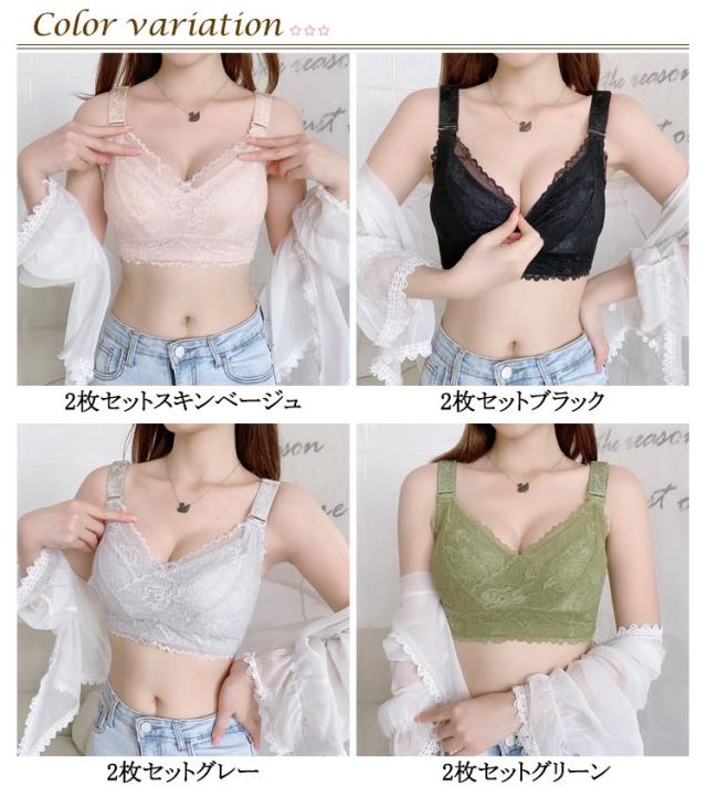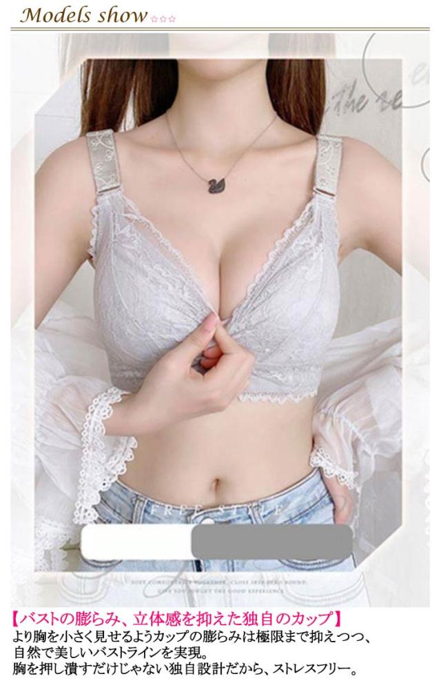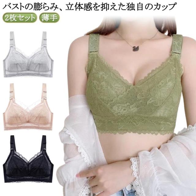 2枚セット!胸が小さく見えるブラ 胸を小さく見せるブラジャー レディース 総レース ブラジャー 花柄レース ノンワイヤーブラジャー 薄手 着痩せブラ 育乳ブラジャー 脇高ブラ 送料無料