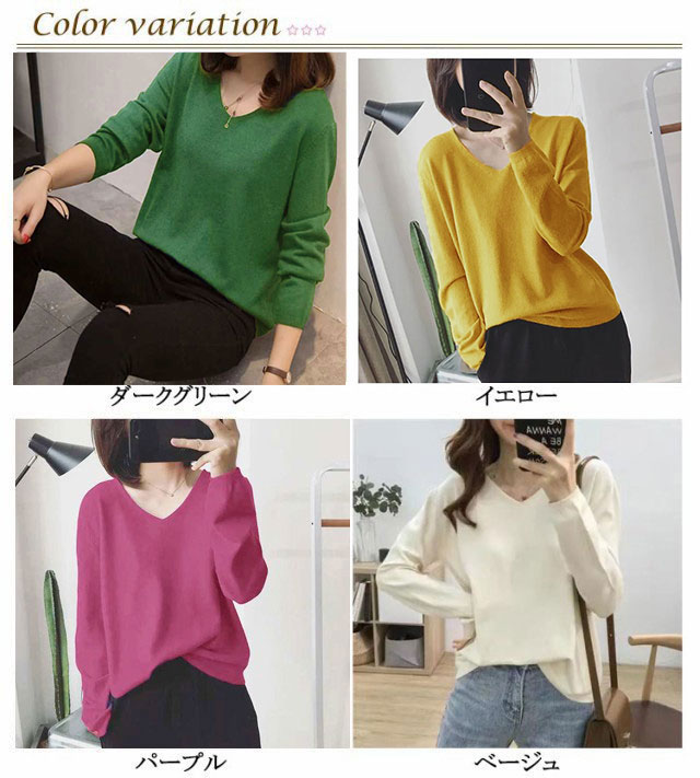 | 9colors×6size マルチに使える薄手Vネックニット | |