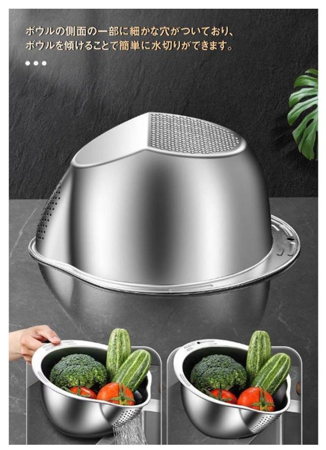 3WAY 水切りボウル ステンレス 2個セット 米とぎ ボウル ザル 洗米ボール 水切り ラーメン うどん ソーメンの水切り 野菜水切り 下ごしらえ ボール 調理用品