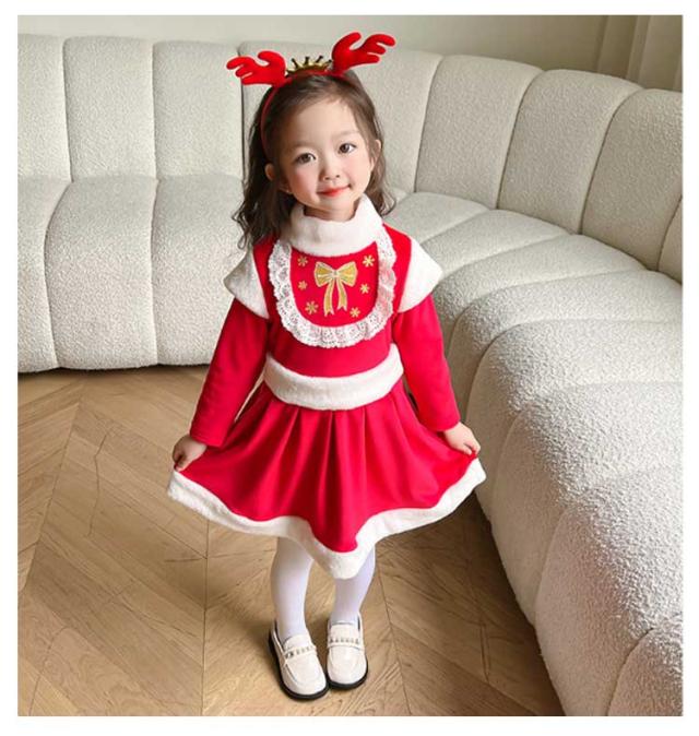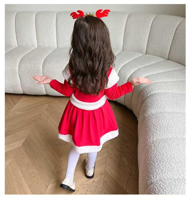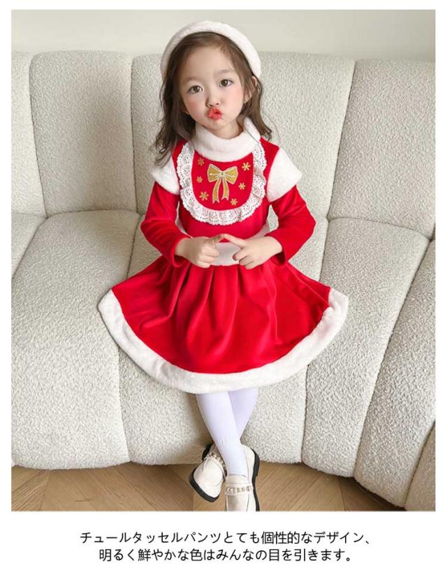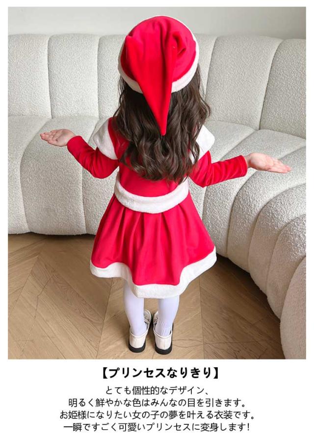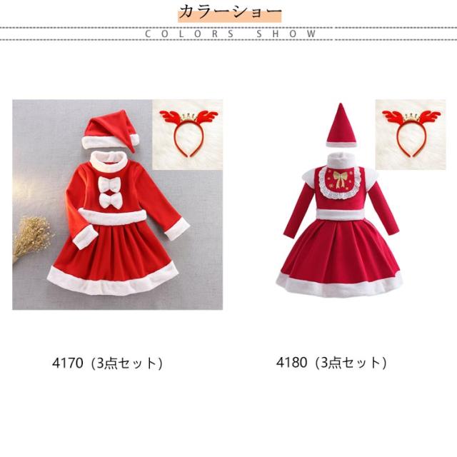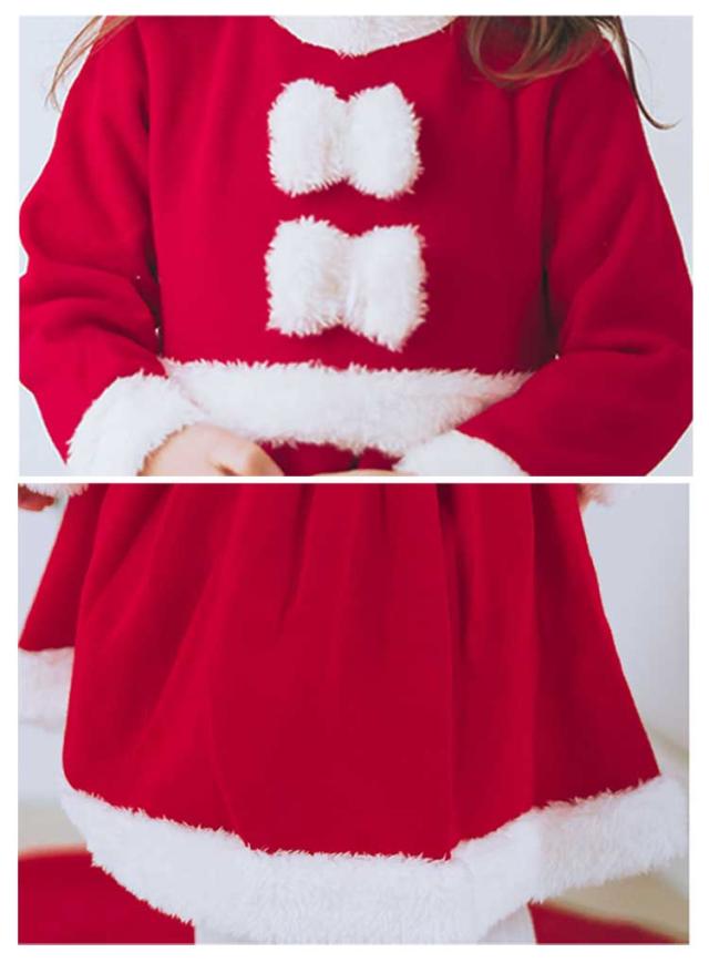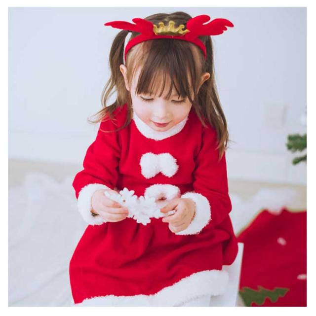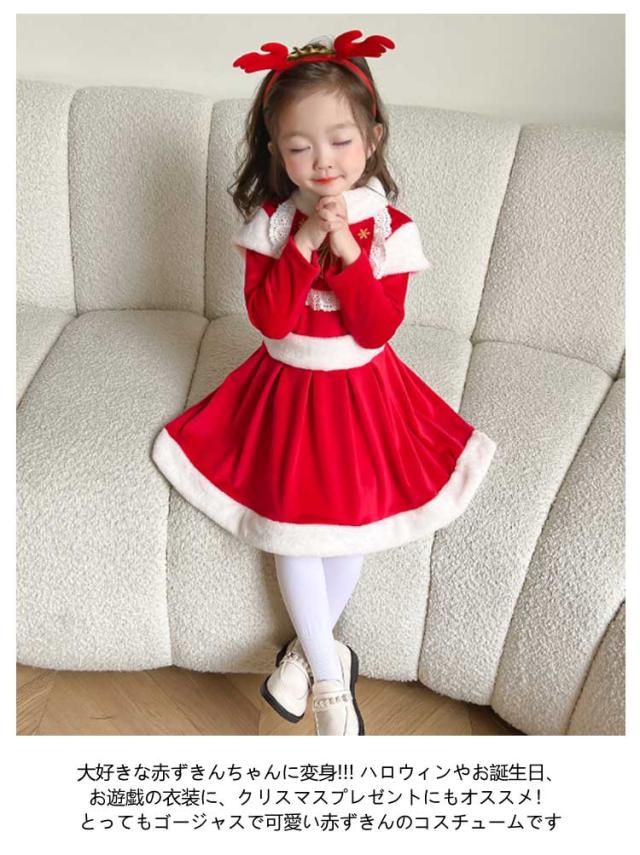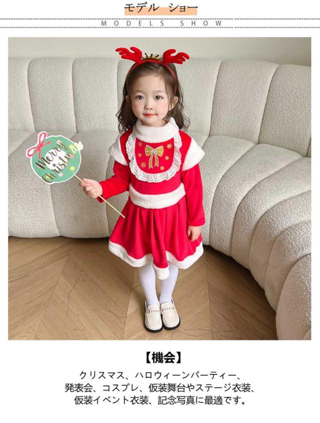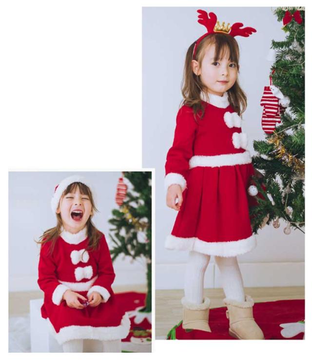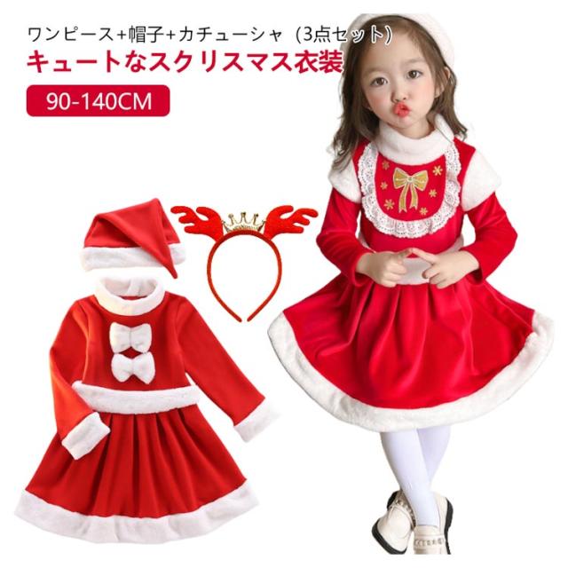 3点セット クリスマス コスプレ 子供 サンタ服 女の子 キッズ サンタコスプレ サンタクロース クリスマス衣装 ワンピース 帽子 カチューシャ トナカイ ワンピース プレゼント ファミリーパーティー コスチューム 仮装 演出服 パーティー