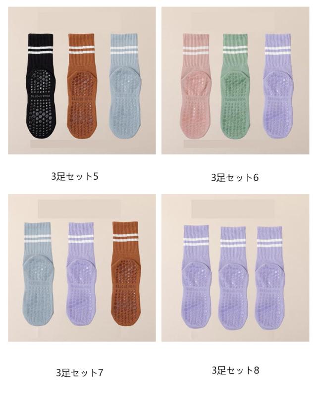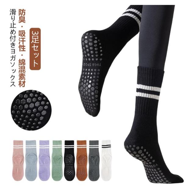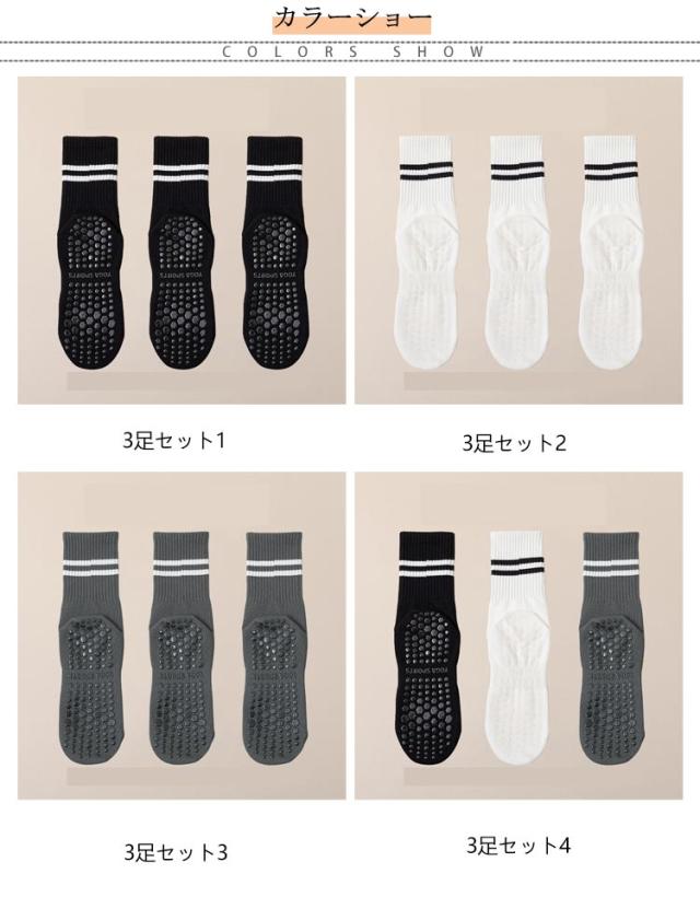 3足 セット 靴下 ヨガソックス レディース ソックス ハーフ丈 おしゃれ ピラティス 滑り止め リブ クルーソックス トレーニング スニーカー用ソックス スニーカーソックス ハイソックス フィットネス 足裏 ヨガ靴下 黒 白 送料無料