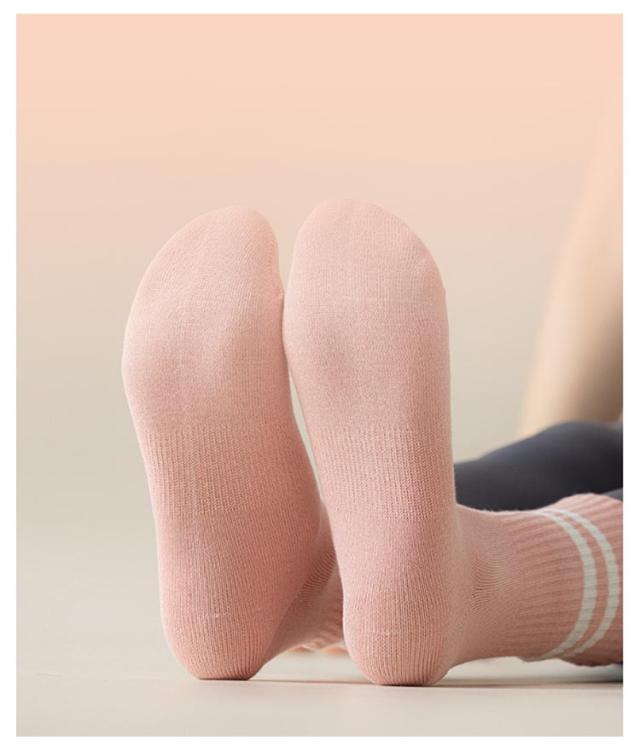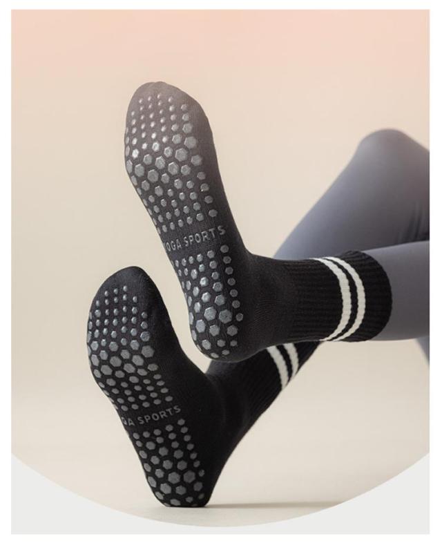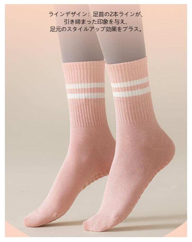 | 防臭・吸汗性・綿混素材 滑り止め付きヨガソックス 3足セット シンプルデザインでお手持ちのスポーツ・ヨガ・ピラティスウェアと合わせやすいため、着回し力抜群です。 足首と土踏まずを包むフィット感のあるリブ部分は、運動時の脱げにくさだけでなく、衝撃への耐性も補えます。 綿素材で吸汗性もあり、防臭効果もあるため蒸れやすい時期にも安心です。滑り止め部分はクッション性もあり足への負担が緩和されます。 ラインデザイン:足首の2本ラインが、引き締まった印象を与え、足元のスタイルアップ効果をプラス。 滑り止め付き:フルフット(足裏全体)にシリコン滑り止め加工を施し、バランス保持や転倒防止をサポート。安心感を高めながら、パフォーマンス向上にもつながります。 | |