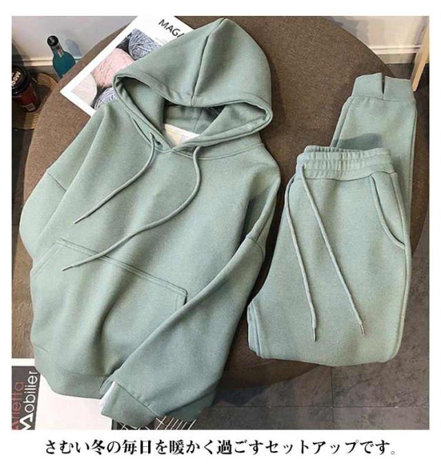 裏起毛 上下 ルームウェア スウエット フーディー スウエットパンツ パーカー セットアップ プルオーバー フード付き レディース 秋 冬 ジャージ スエット 部屋着 長袖 上下セット 厚手 あったか 保温 防寒 ゆったり 無地 シンプル カジュアル 裏起毛パーカー
