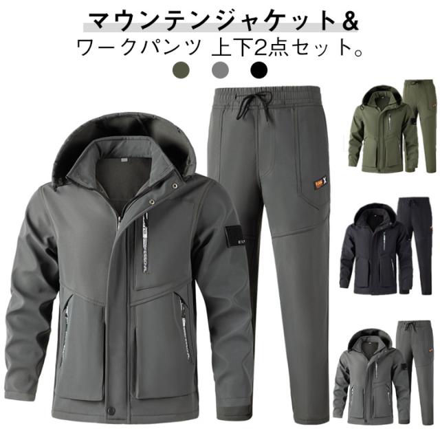 裏起毛 厚手 マウンテンジャケット 防寒 カジュアル 撥水 マウンテンジャケット 防風 裏起毛 防水 撥水 釣り ジャンパー 上下セット ジャケット ミリタリー ウインドブレーカー ワークパンツ スポーツ 自転車 作業用 登山 防寒 キャンプ ランニング