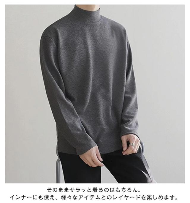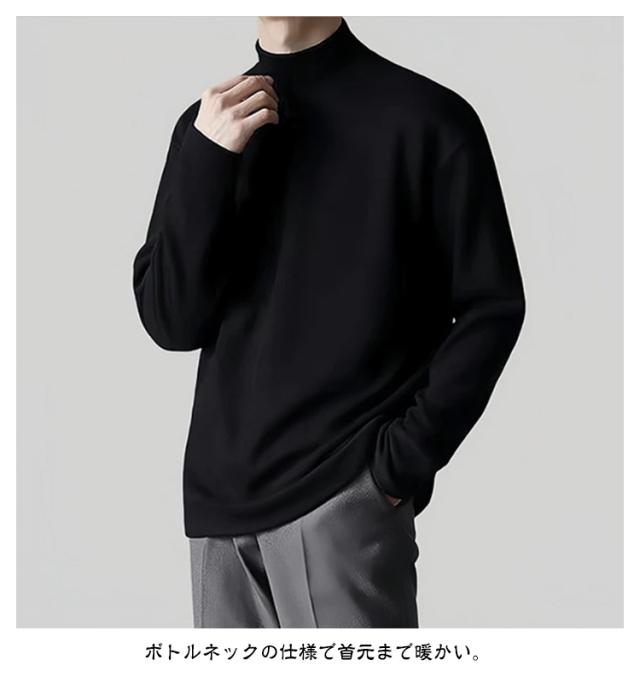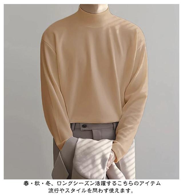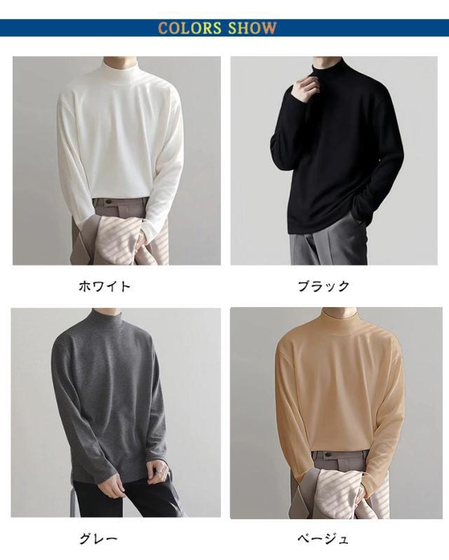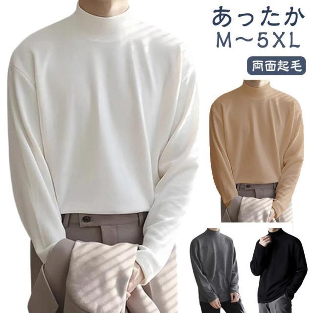 長袖 カットソー ハイネック 暖かい トップス カジュアル メンズ 両面起毛 肌着 重ね着 インナー 両面起毛 防寒 あったか 無地 インナーシャツ シンプル 柔らかい 保温性 おしゃれ 黒 白 ボトルネック