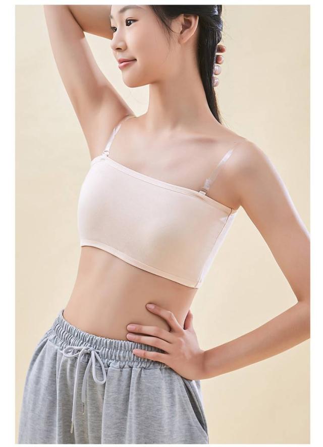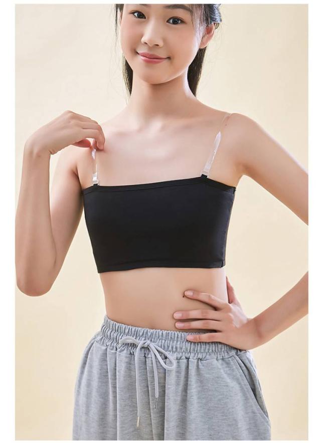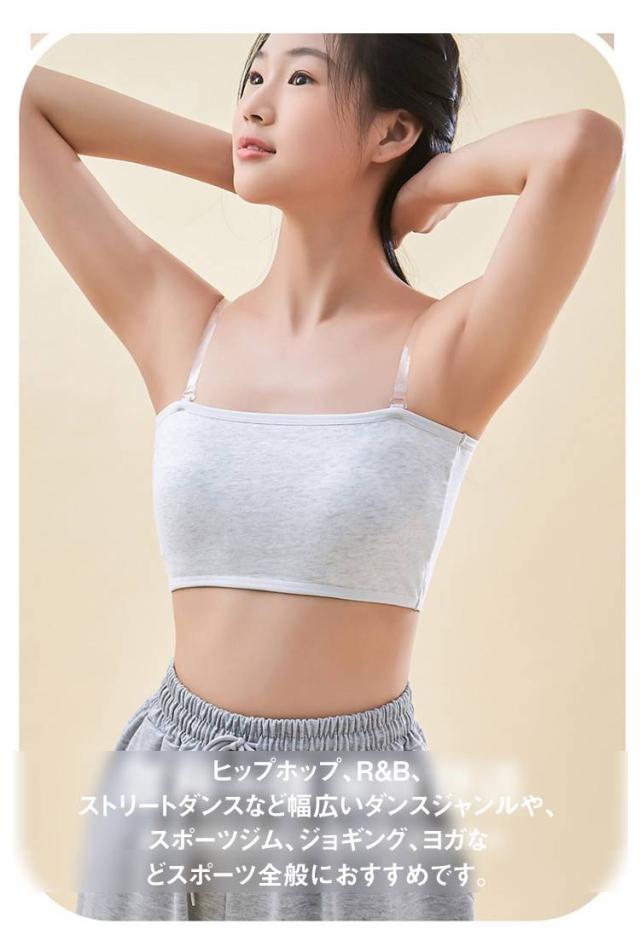 | 透明ストラップおまけ付き!シンプル無地のチューブトップブラです。 伸縮性のあるノンストレスな着心地で体にフィット。 固定パッドが安定しているのでブラジャーがまだ早いキッズのスポーツブラやブラトップに。 フリーサイズですがよく伸びるのでキッズ、ジュニア、大人まで幅広く対応 。 ストラップレスなので、肩出しスタイルやダンス衣装などにも最適です。 ヒップホップ、R&B、ストリートダンスなど幅広いダンスジャンルや、スポーツジム、ジョギング、ヨガなどスポーツ全般におすすめです。 | |