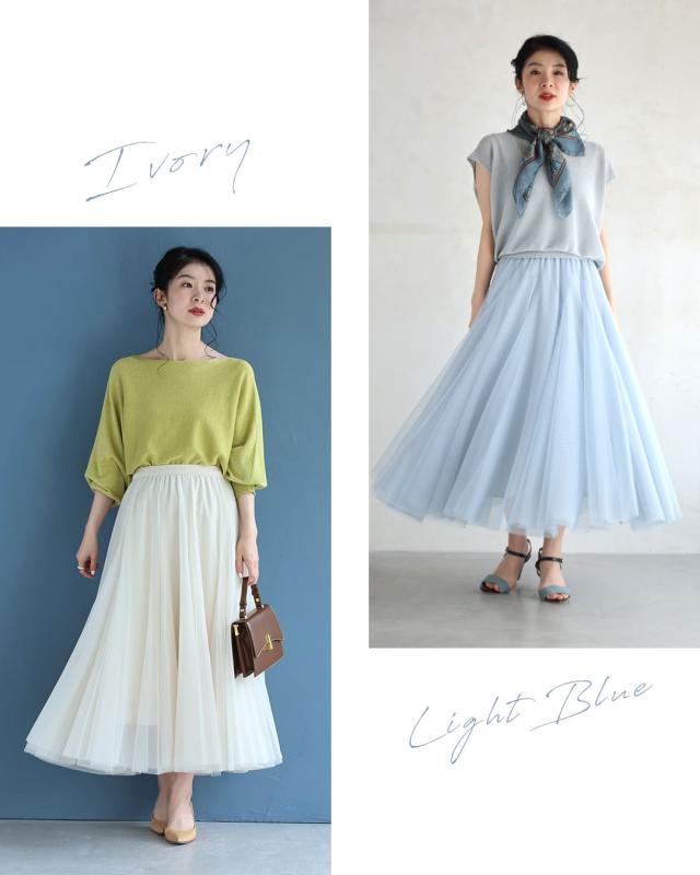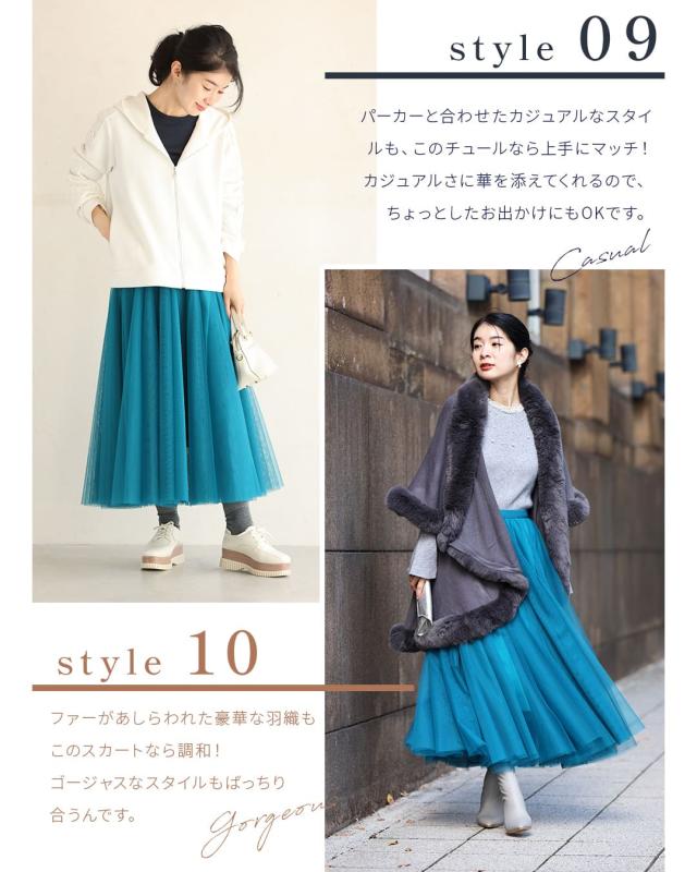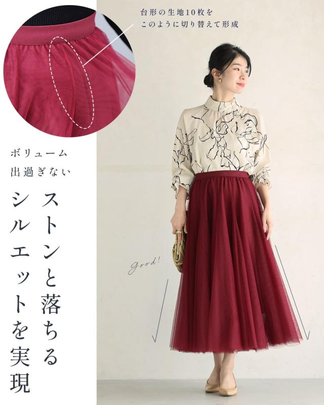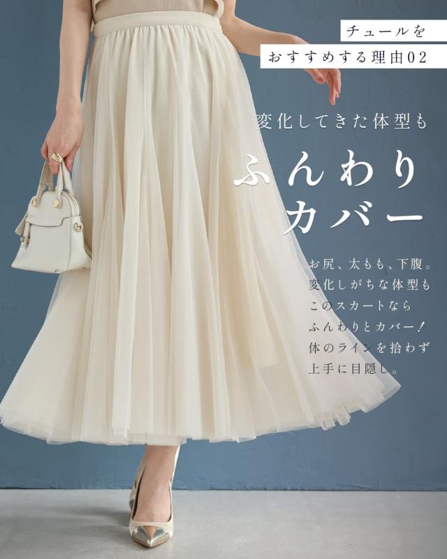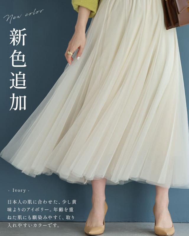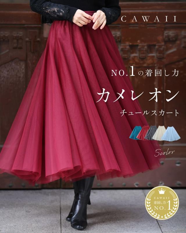再入荷10月14日 着回しNO.1!カメレオンチュールスカート cawaii w60980ps 春 夏 秋 冬 日常使い おでかけ 旅行 女子会 体型カバー ふんわり 上品 シンプル レディース ファッション ミセス 30代 40代 50代