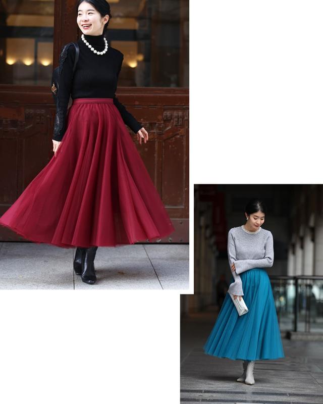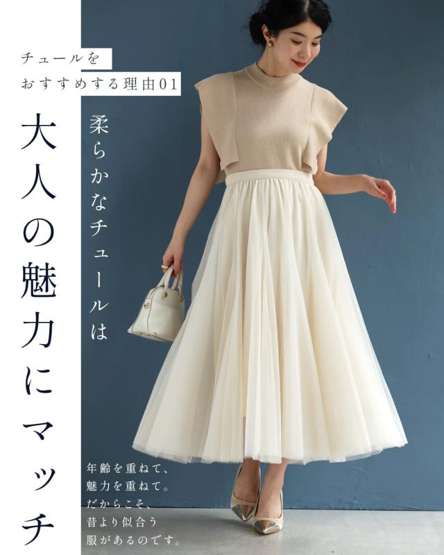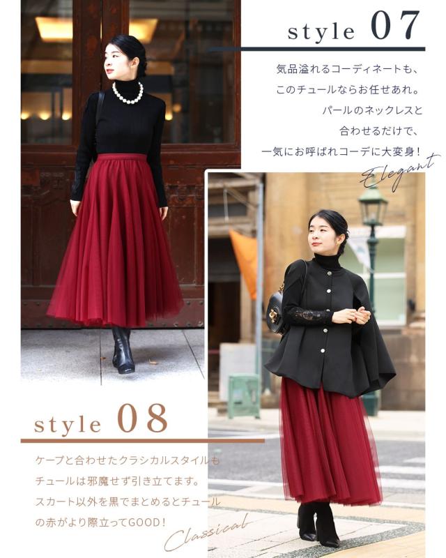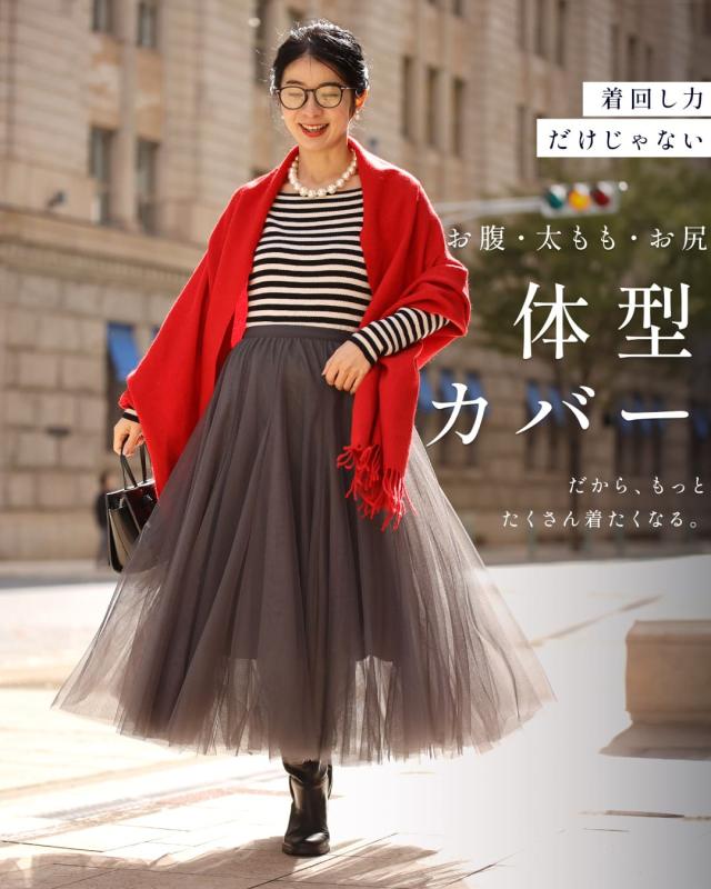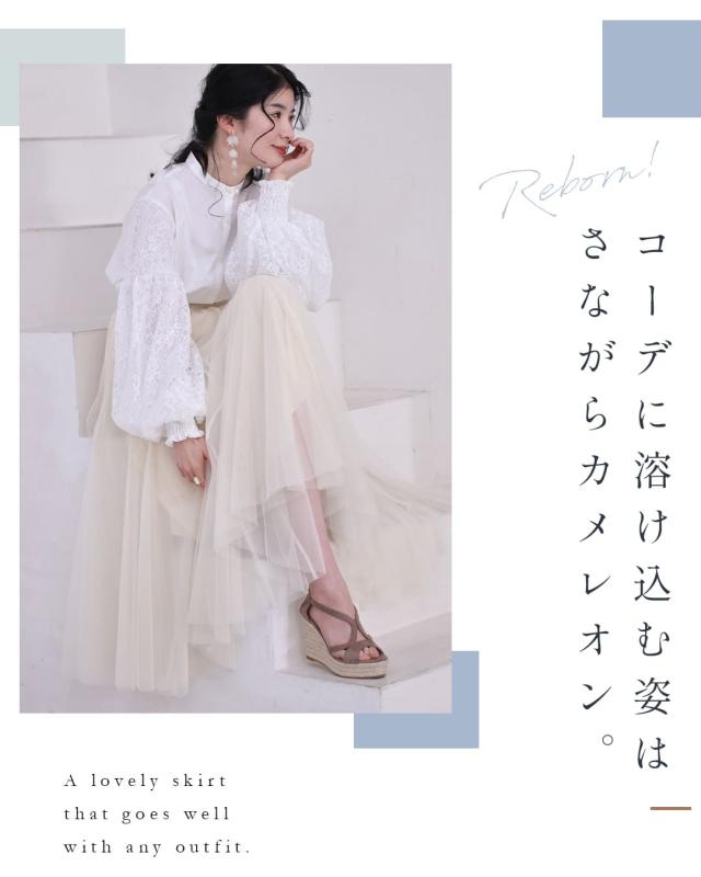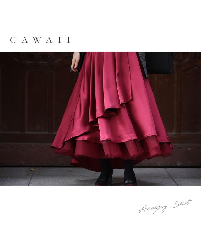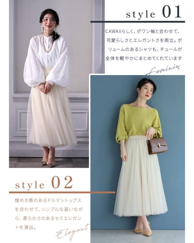 再入荷10月14日 着回しNO.1!カメレオンチュールスカート cawaii w60980ps 春 夏 秋 冬 日常使い おでかけ 旅行 女子会 体型カバー ふんわり 上品 シンプル レディース ファッション ミセス 30代 40代 50代