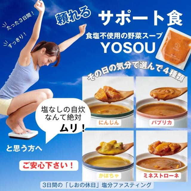 塩分ファスティング 公式サポート食 食塩不使用の野菜スープYOSOU 12個セット(4種類3個=1食230g/12個) 塩分を摂取しない数日を過ごす 塩分ファスティング 塩の休日 塩抜きダイエット むくみスッキリ快適生活