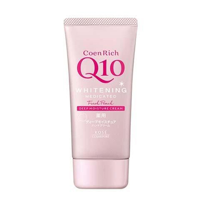 | プロフィール: | しっとりなめらかな感触のコエンザイムQ10配合ハンドクリーム。3種の濃密オイル配合。美白有効成分配合で、シミ・ソバカスを防ぎます。爪・ささくれもケアして、指先まで若々しい印象に。もぎたてピーチの香り。 |