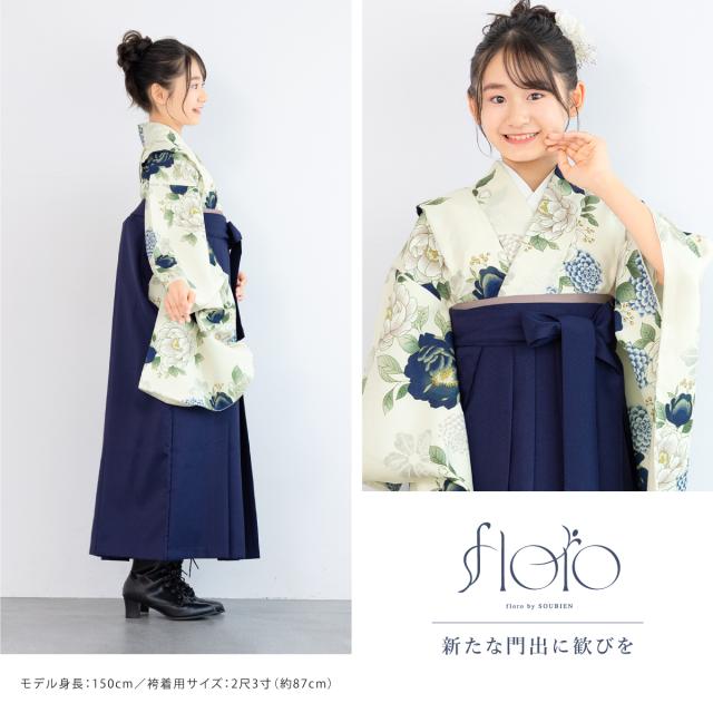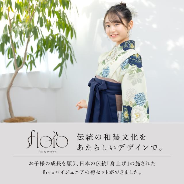 袴セット 卒業式 小学生 女の子 ジュニア 創美苑オリジナル floro 黄色 生成り くすみ 紺 花 販売 13歳 十三参り ハーフ成人式 送料無料