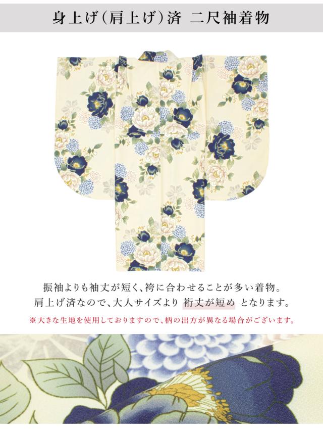 ※着物の柄部分は大きな生地を使用して作られておりますので、色や柄の出方、模様の配置等が画像と異なる場合がございます。