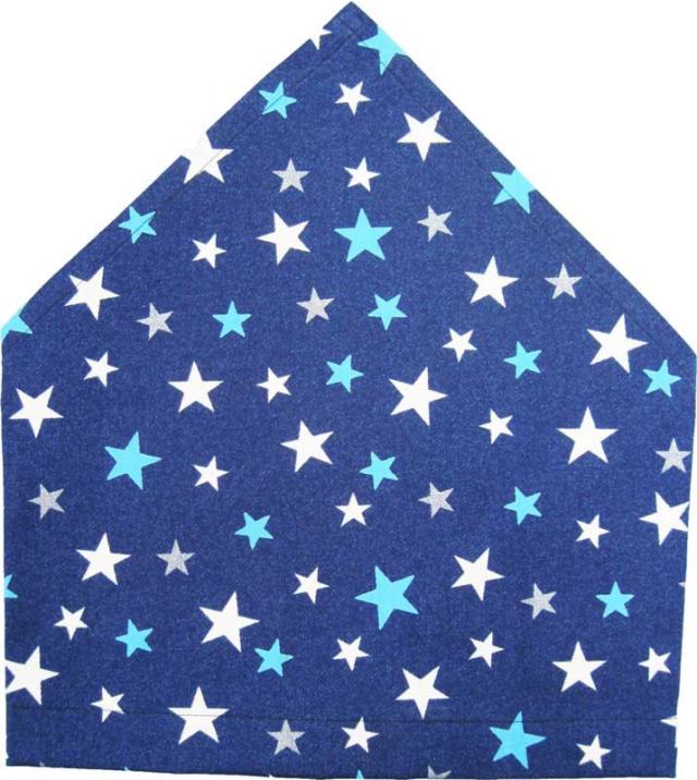 紺地にブルー星柄の三角巾をつけて
