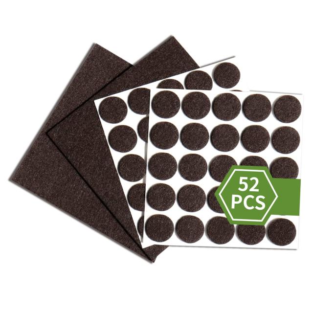 ・製品仕様傷防止テープのフェルトパッドのセットには2種類のサイズがセットになっています。円形50個+方形 2個:直径2.5cm50枚+15*15cm2枚合計52枚入り 厚さ:3mm、色:ダークブラウン、材質:PET。あらゆる家庭用家具に適しています、テーブル、食卓、椅子、戸棚、キュリオ、電子レンジ、机、洗濯機、冷蔵庫、パソコン、植木鉢、電話、ソファ脚、本棚などの家具の後ろ、ドアの後ろ、飾り品の下、電気品などの様々な家具で大活躍です。当社のフローリングプロテクターは、あらゆるタイプの椅子の脚、家具の脚、その他の家庭用家具、電気