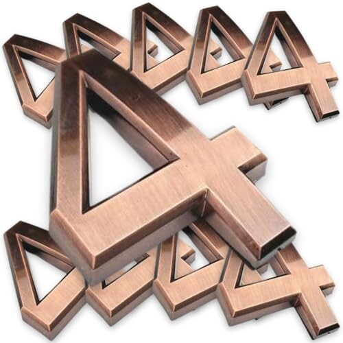 数字プレート。4の数字×10個セット。色は艶ブロンズ。厚みのあるとても質感高い造形です。裏面はシールになっており、簡単に強力接着できます。