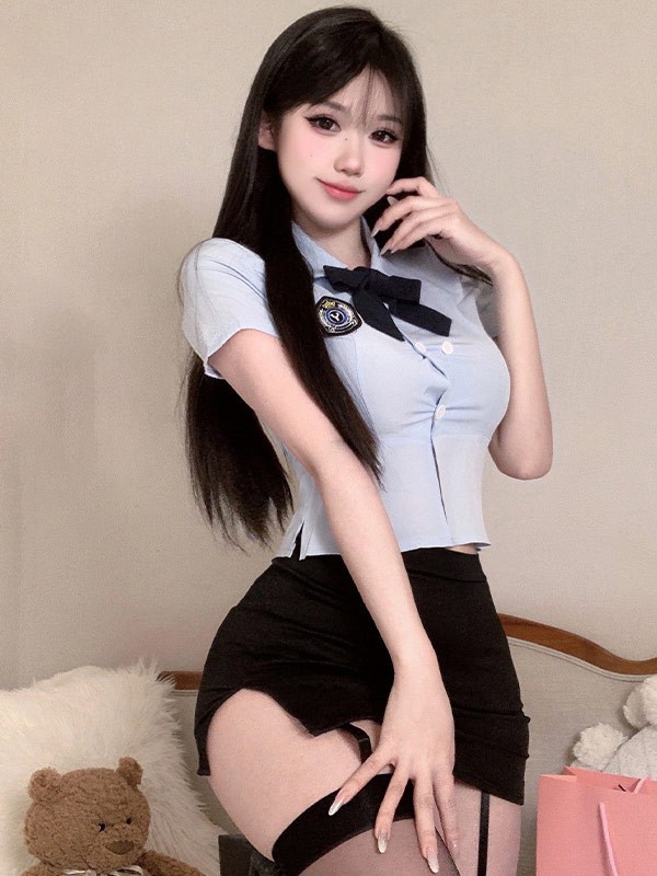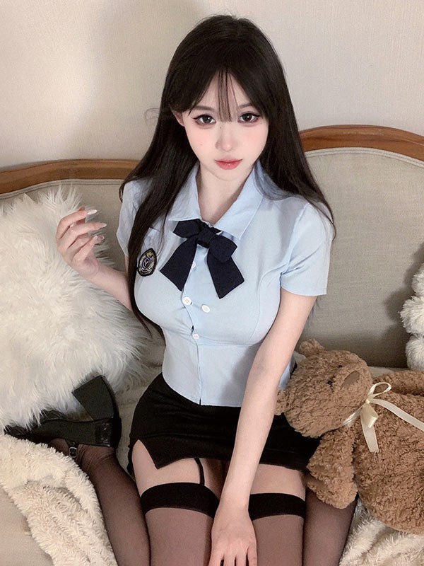 トップス+リボンタイ+Tバック+ミニスカート+帽子