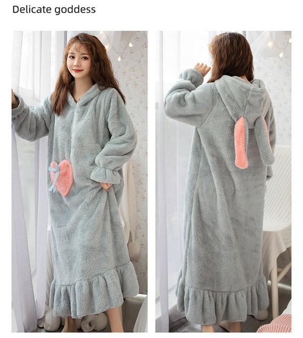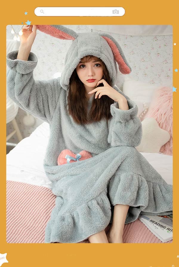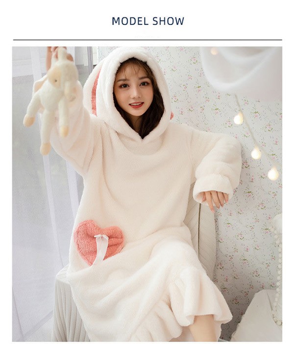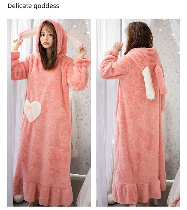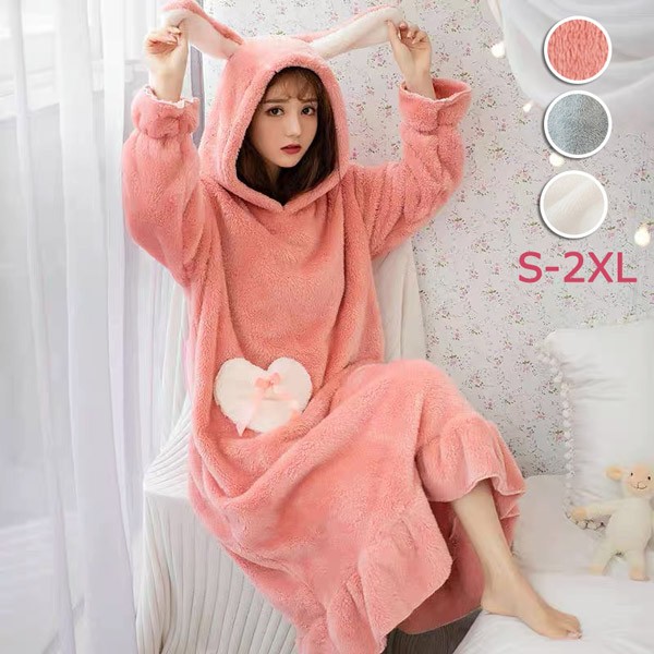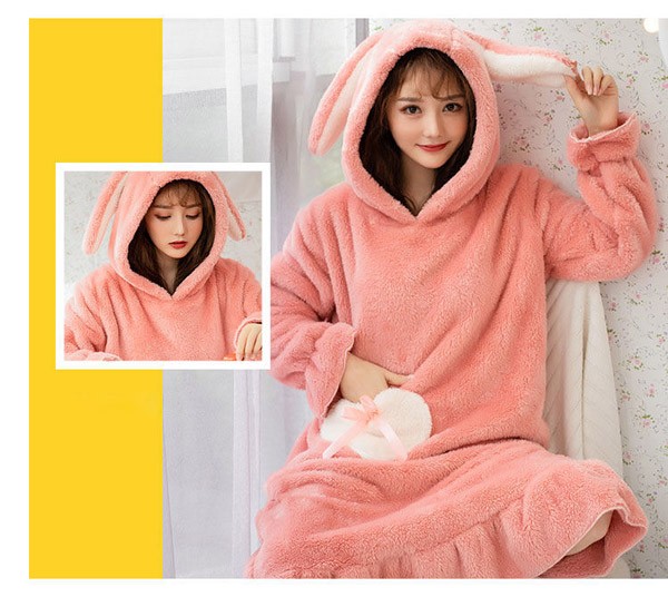 ルームウェア もこもこパジャマ ワンピース レディース 冬 かわいい うさ耳 長袖 着る毛布 もこもこ パジャマ 部屋着 寝間着 おうち時間 女性用 ふわふわ 韓国 暖かい モコモコ あったか プレゼント 結婚祝い 個性的 目立つ系 dh005m3m3m5
