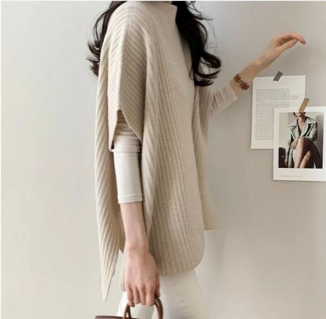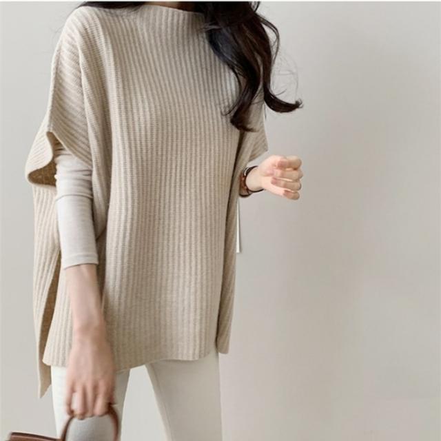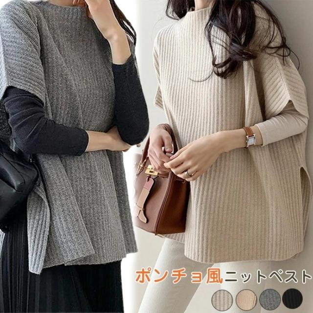 ニット ベスト ポンチョ風 レディース サイドスリット トップス ゆったり プルオーバー 重ね着 暖かい 韓国ファッション 可愛い 体型カバー 柔らか 通勤 通学 お洒落 無地 大きいサイズ 春 秋 de059n1n1m5
