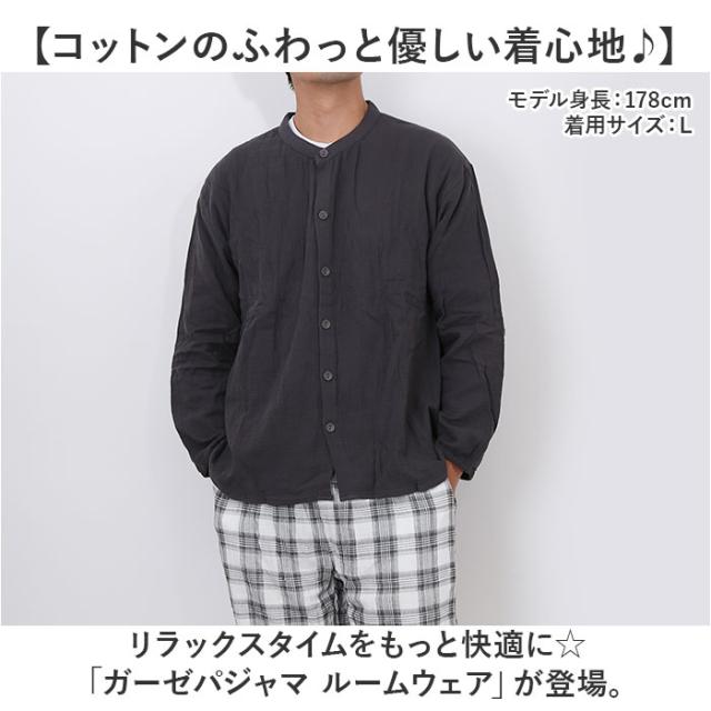 パジャマ セットアップ メンズ 通販 長袖 ガーゼ ナイトウエア ルームウェア 綿 コットン 上下 セット ロングパンツ 長ズボン パンツ ズボン 前開き ゆったり 部屋着 寝巻 シンプル