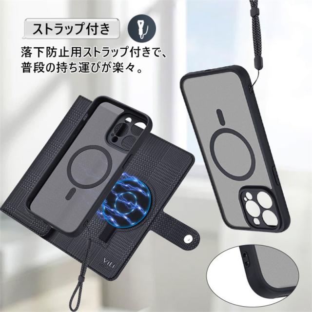 iPhone 15 Pro Max ケース 手帳 Magsafe対応 iPhone 14 Pro ケース 手帳型 分離式 iphone14 iphone15 Plus カバー アイフォン 15 14 Plus 15pro スマホケース 耐衝撃 カード収納 可愛い オシャレ セパレート ストラップ付き スキミング防止
