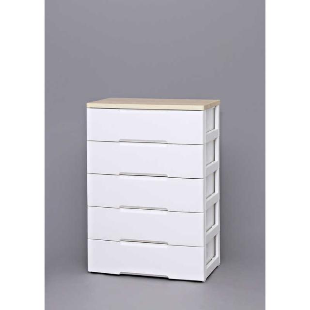 アイリスオーヤマ IRIS OHYAMA ウッドトップチェスト 5段 スーパーワイドタイプ(ホワイト&ナチュラル/約幅80.5×奥行51×高さ116cm)