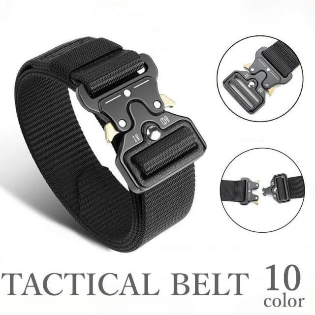 タクティカルベルト メンズ 男性用 ワンタッチ メタルバックル ナイロンベルト 穴なし 装備 ミリタリー サバイバルゲーム サバ