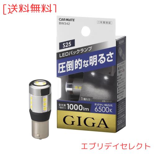 カーメイト(CARMATE) 車用 LED バックランプ GIGA S25 シングル クリア球 6500K 1000lm 純白光 車検対応 1個入り BW342