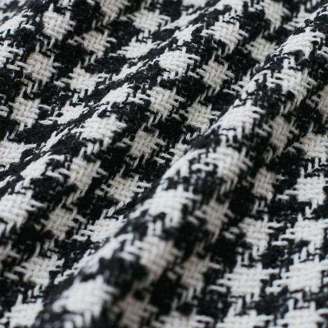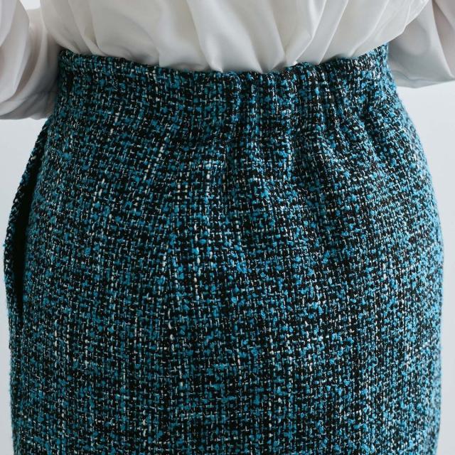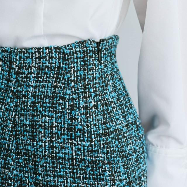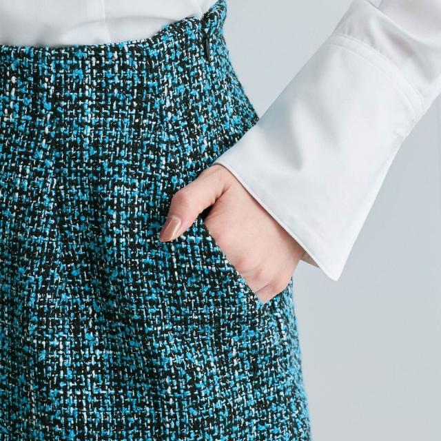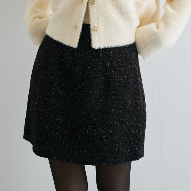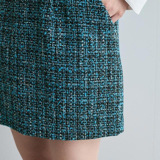 ラメツイードと千鳥柄のトレンドボクシーミニスカート。
