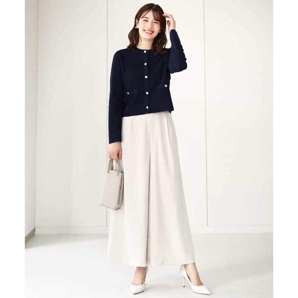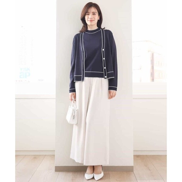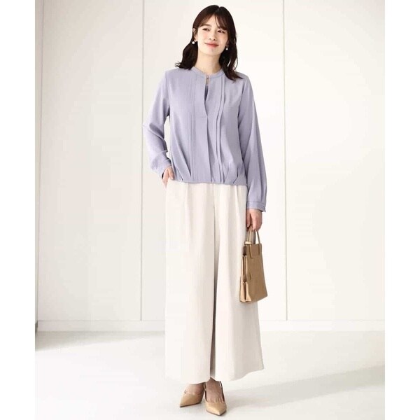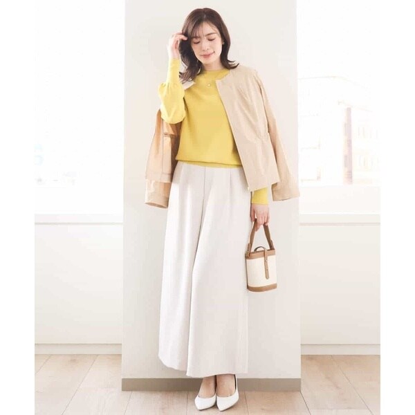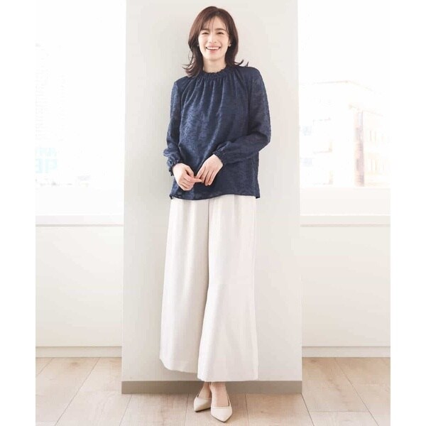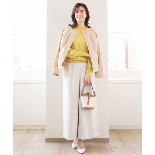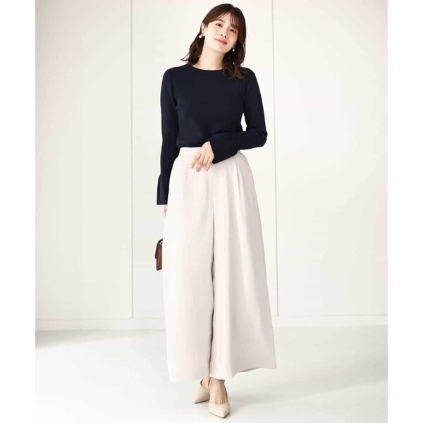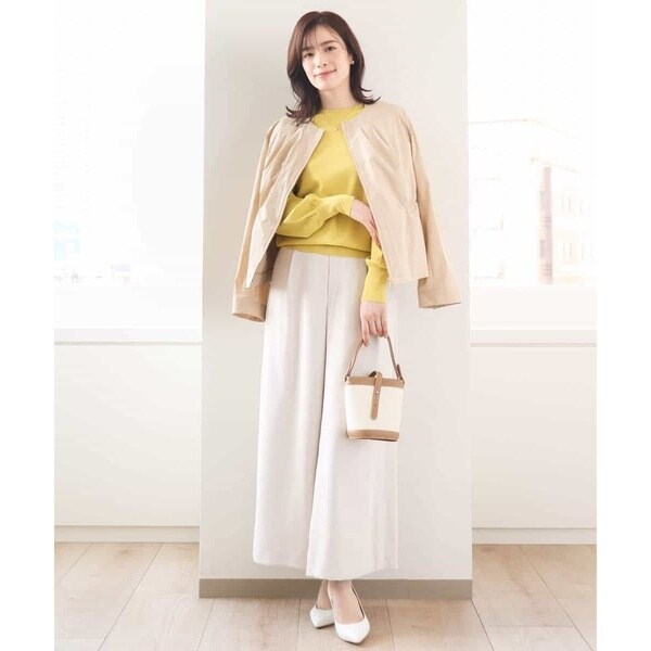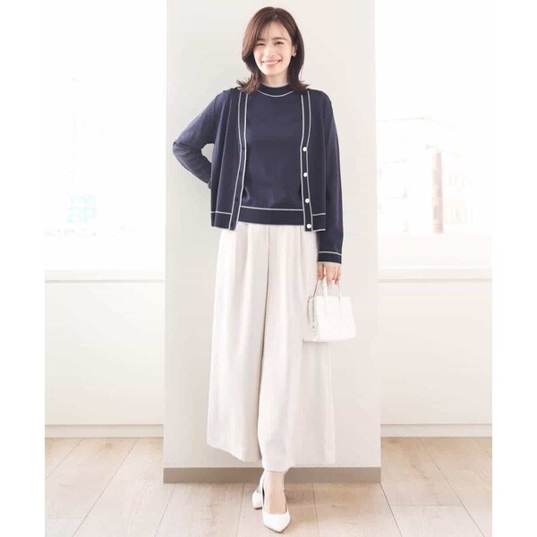 きちんと見えのパンツは汎用性も◎。オフィスなどお仕事シーンにも最適。ブラウスやニットをインでもアウトでも着こなせるので合わせるトップスを選びません。ジャケットとの相性も良いので、セレモニーなどのONシーンにも着回せます。