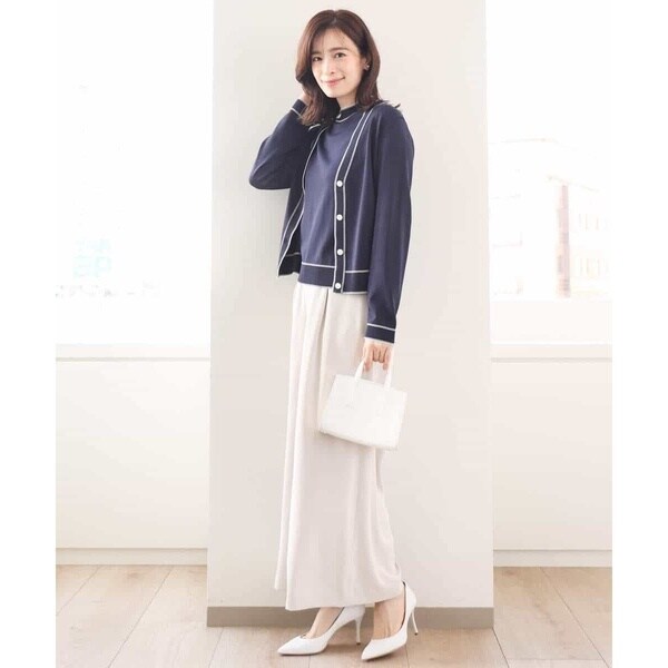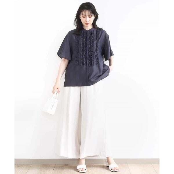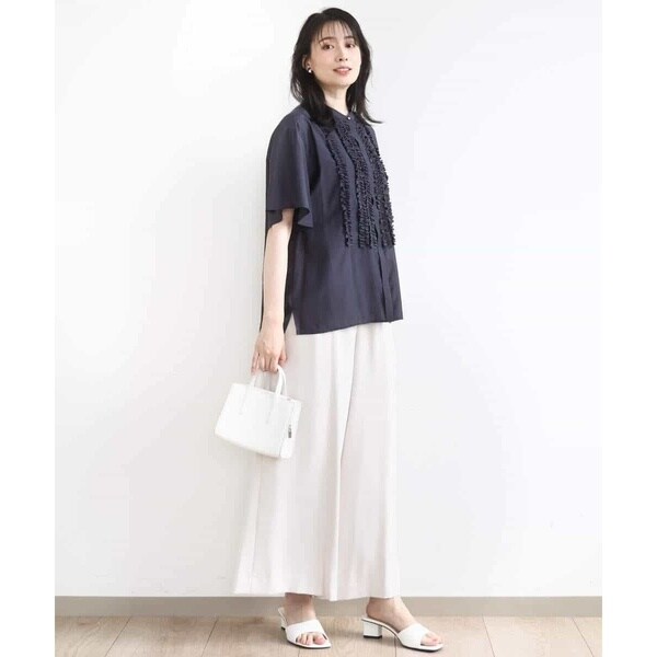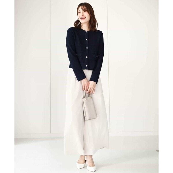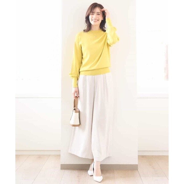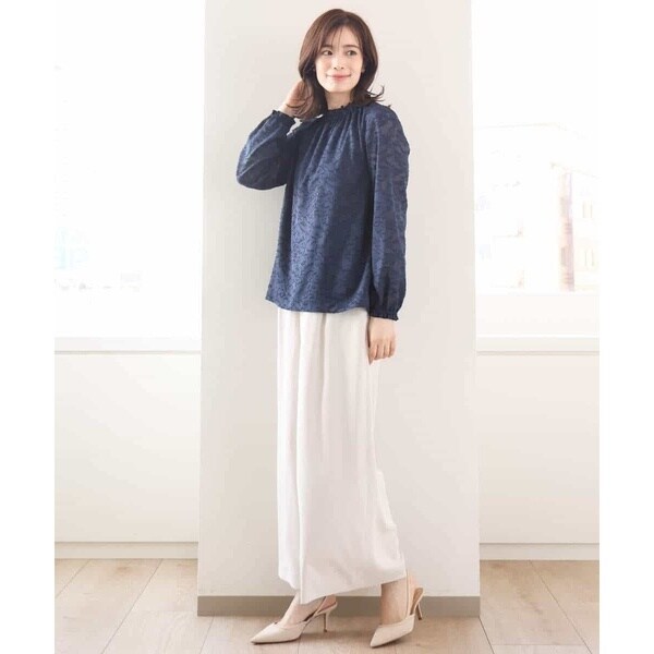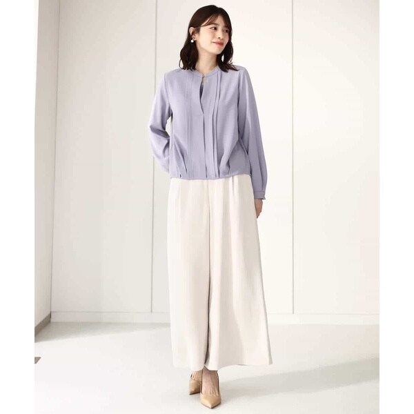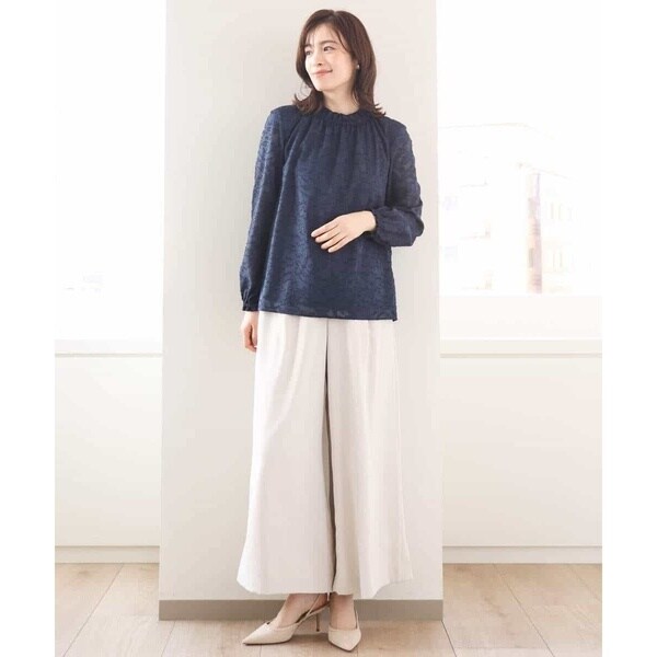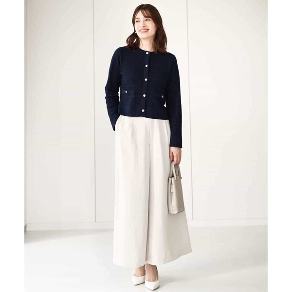 きちんと見えのパンツは汎用性も◎。オフィスなどお仕事シーンにも最適。ブラウスやニットをインでもアウトでも着こなせるので合わせるトップスを選びません。ジャケットとの相性も良いので、セレモニーなどのONシーンにも着回せます。