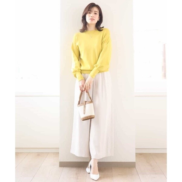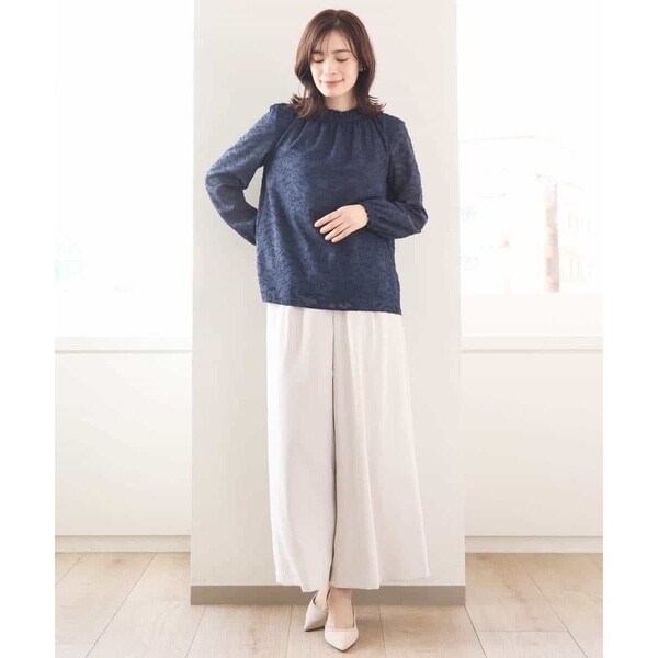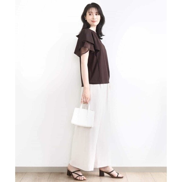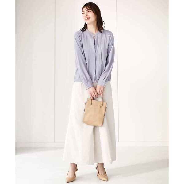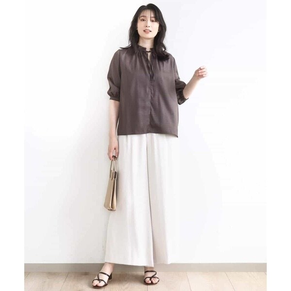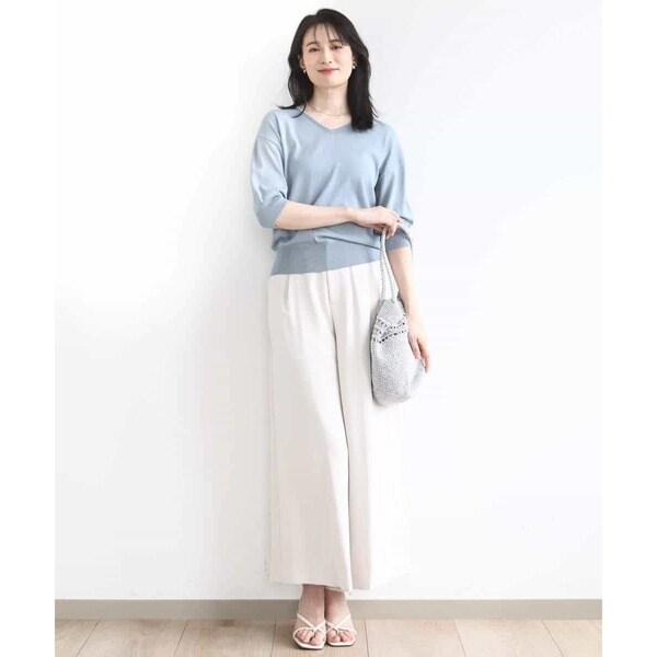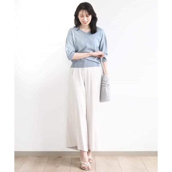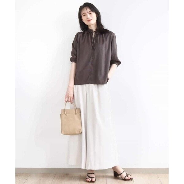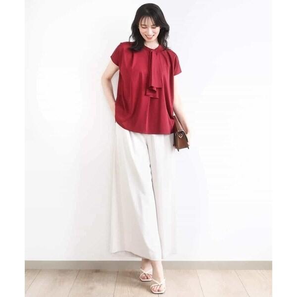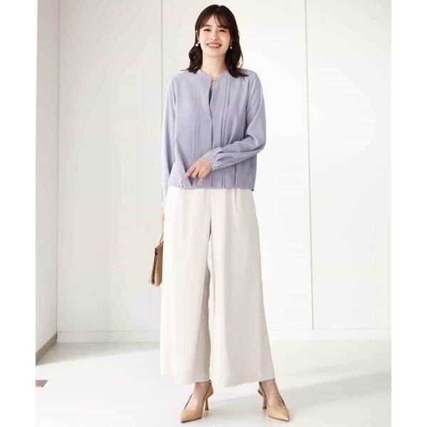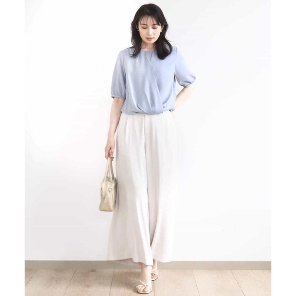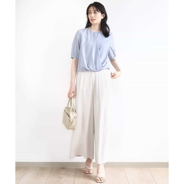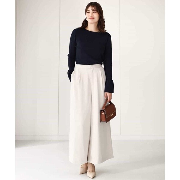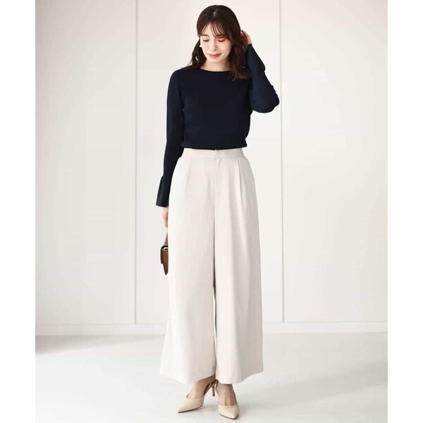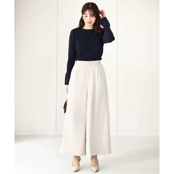 程良いハリ感と落ち感のあるきれいめ素材。上品な素材はきれい見えし、ワイドながらも広がりすぎず大人っぽく着こなせます。シワになりにくいイージーケアも嬉しい。