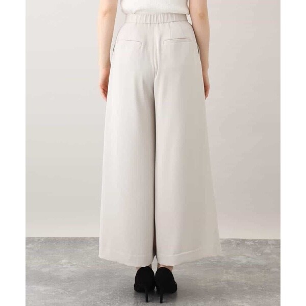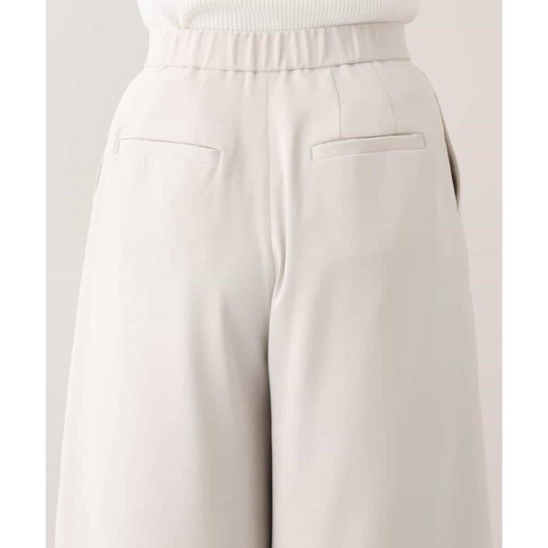 上品な印象のきれいめガウチョパンツ。フロントに取ったタックで気になるお腹周りをカバーし、後ろウエストベルト中心に入れたゴムでストレスフリーな履き心地を実現。
