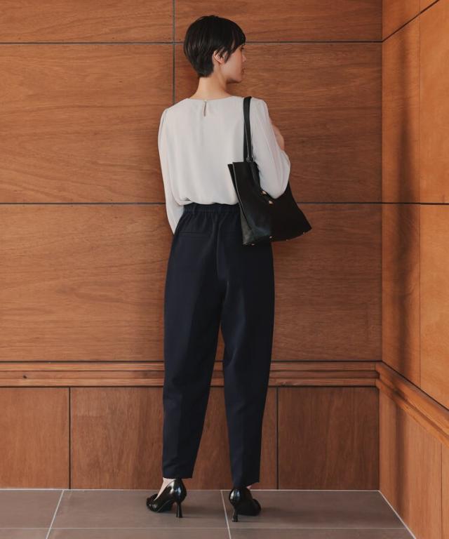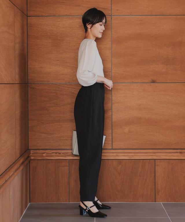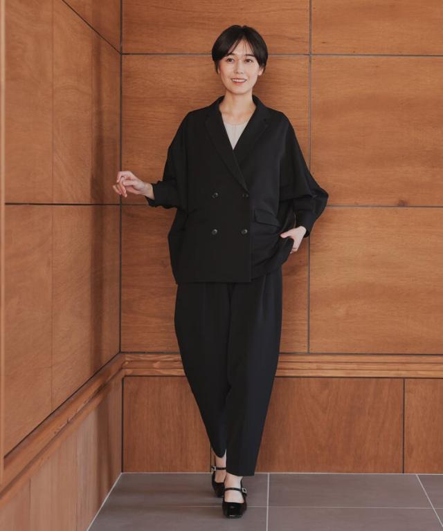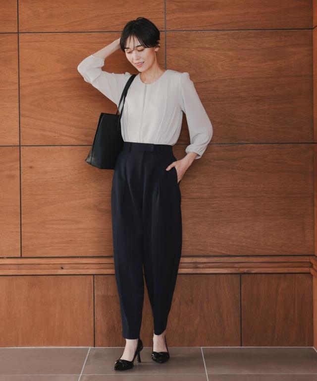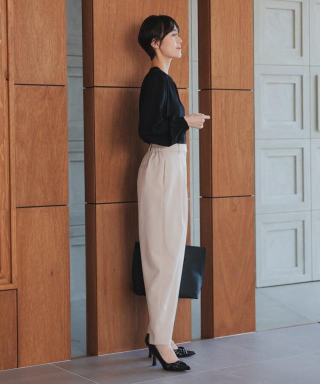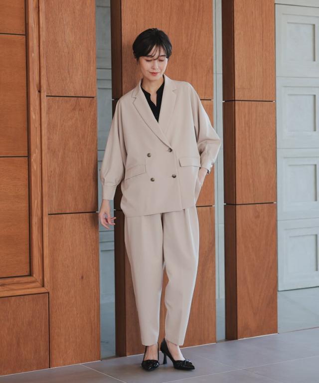 子供の行事に参加する日などにピッタリです。パンツにはタックを入れて動きやすく、