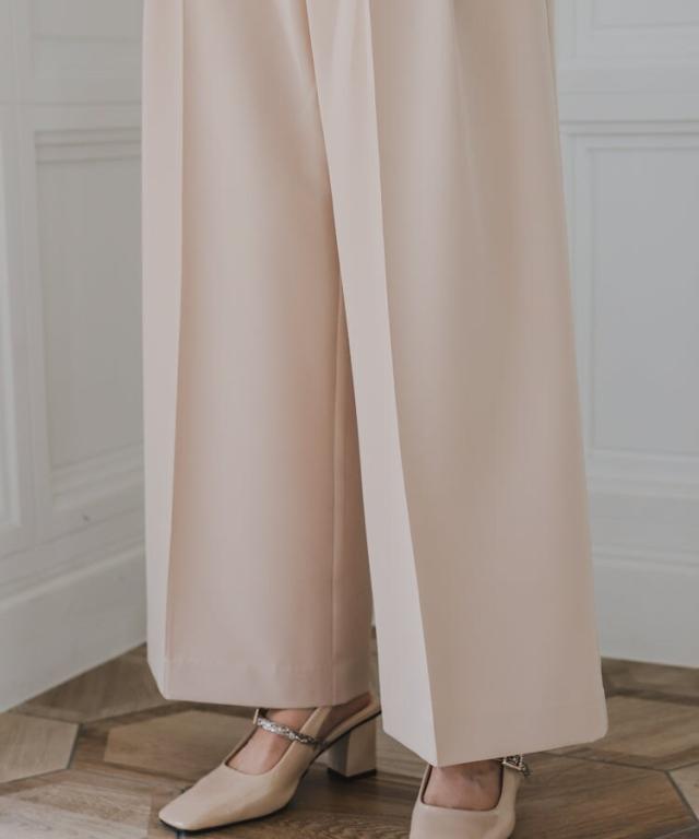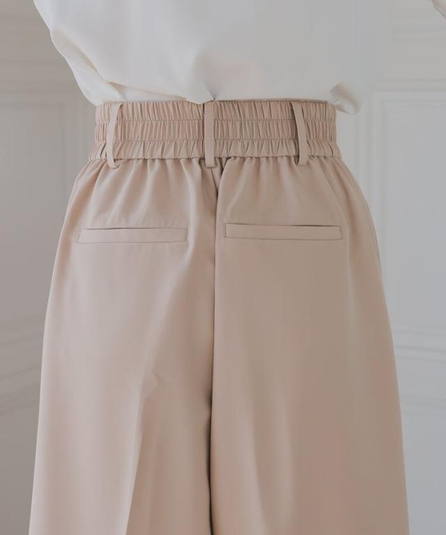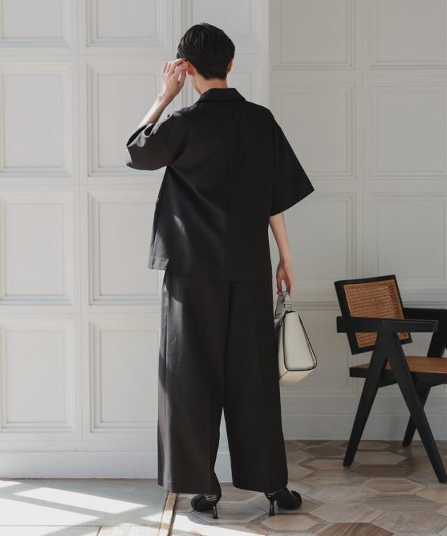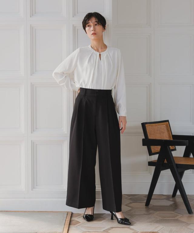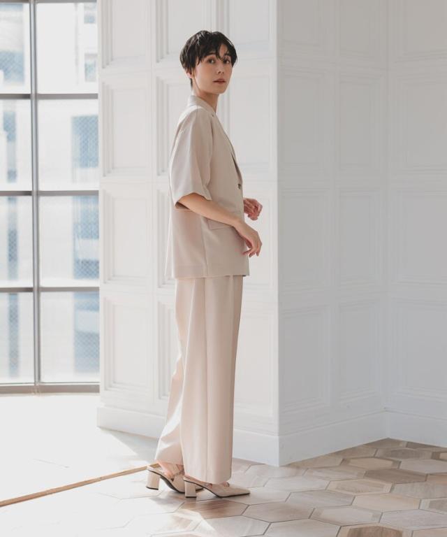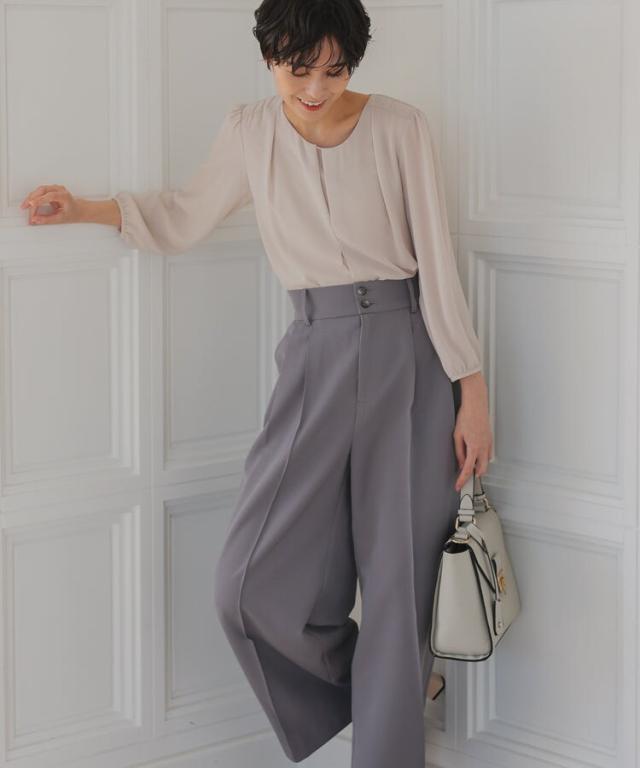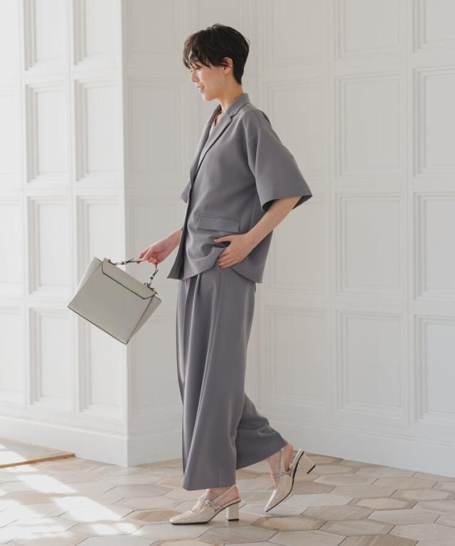 パンツは裾に向かって広がるワイドパンツを使用することで抜け感を演出。