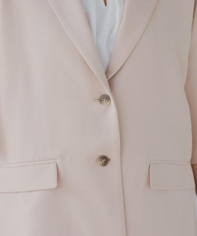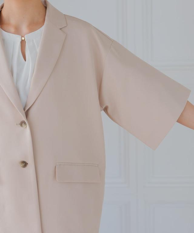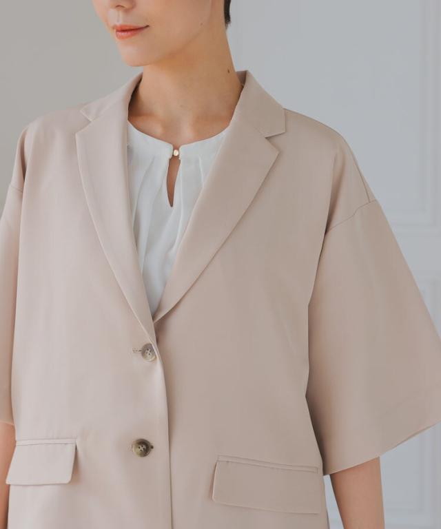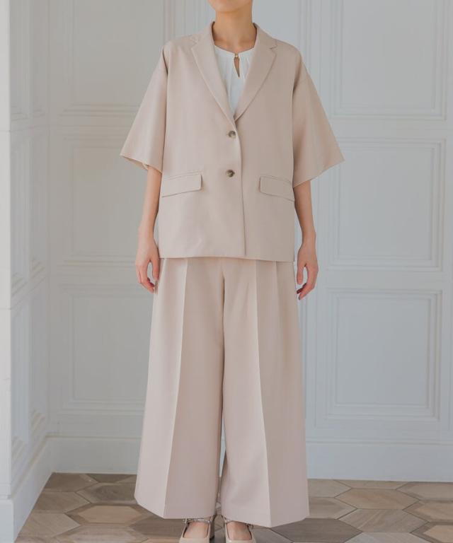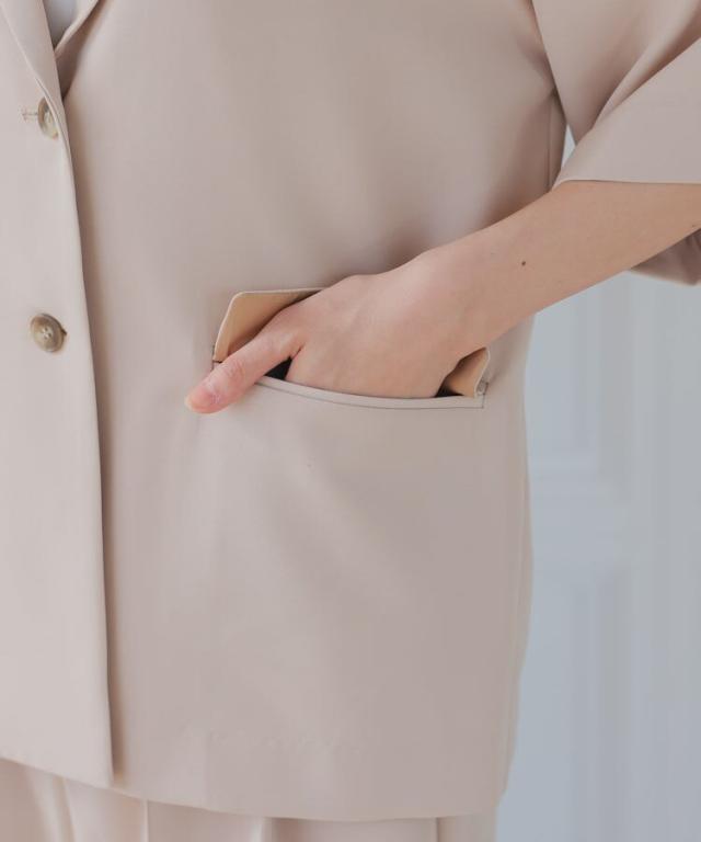 ジャケットには珍しい、5分袖のジャケットとパンツの2ピーススーツ。