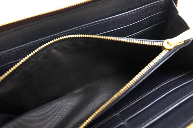 奥行きのあるシュリンクレザーに、ホイルエンボス加工のマルベリーのシグネチャーロゴをデザインしたクラシカルなロングウォレット。三辺をファスナーで囲んだラウンドファスナー型なので、お札やカードポケット、小銭入れの収納スペースが充実しており、ファスナーを開いたときに視認性に優れているのも特徴です。またファスナーで守られているので、大切なお金やカード類を落としてしまうのを防止し、安全性の高いデザインです。