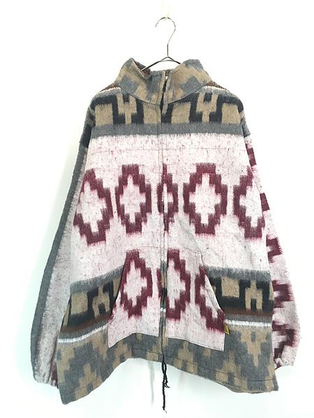 古着 Mexico製 MOLINA INDIAN DRAWIN 「Mexican Brushed」 ネイティブ柄 ブランケット ジャケット XL 古着