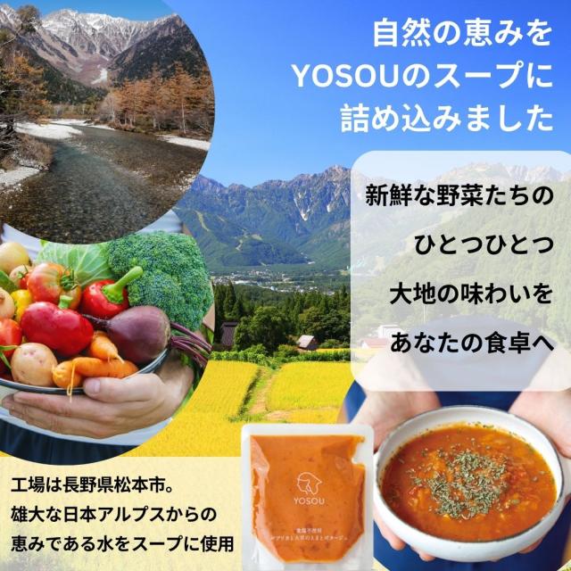 食塩・砂糖・化学調味料不使用 国産 野菜スープ [24食セット×230g/1食] YOSOU 植物性原料100% スープ レトルト 動物性原料不使用 ヴィーガン ベジタリアン 野菜スープ ポタージュ ファスティングサポート食 減塩に取り組む方に自然の味を