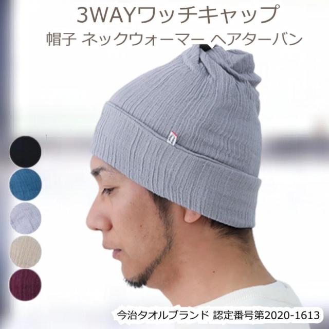 今治タオル 今治 タオル 医療用帽子 医療帽子 日本製 綿100% おしゃれ 男性 メンズ 就寝用 コットン100% ダブルガーゼ 帽子 ニット帽 入院 室内 ワッチ ネックウォーマー スヌード ヘア ターバン ヘアバンド 3Wayワッチキャップ