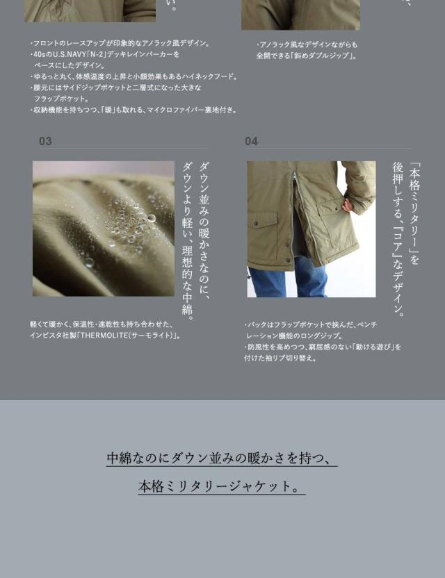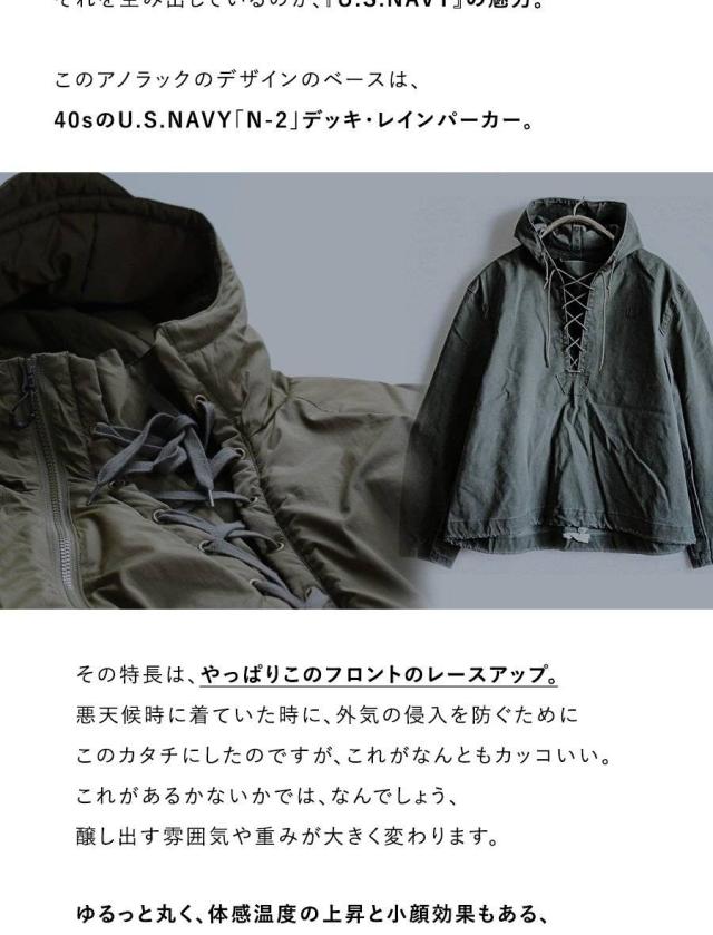 ・40sのU.S.NAVY「N-2」デッキレインパーカーをベースにしたデザイン。